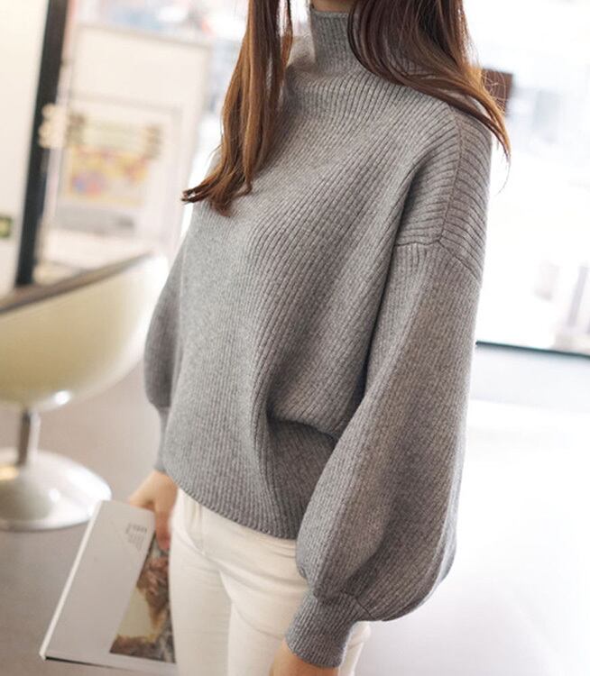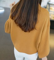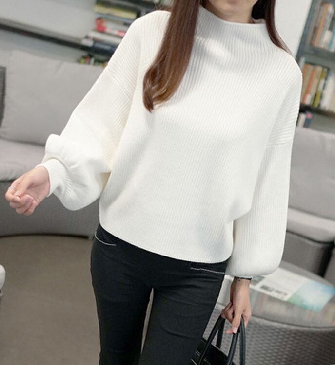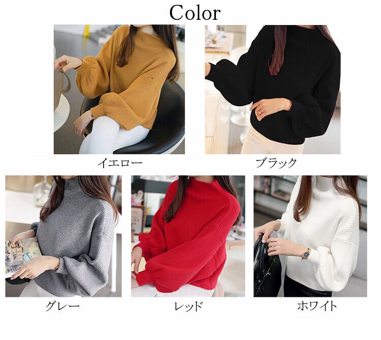 秋冬 レディース ニットセーター トップス パフスリーブ バルーン袖 ハイネック ゆったり オシャレ