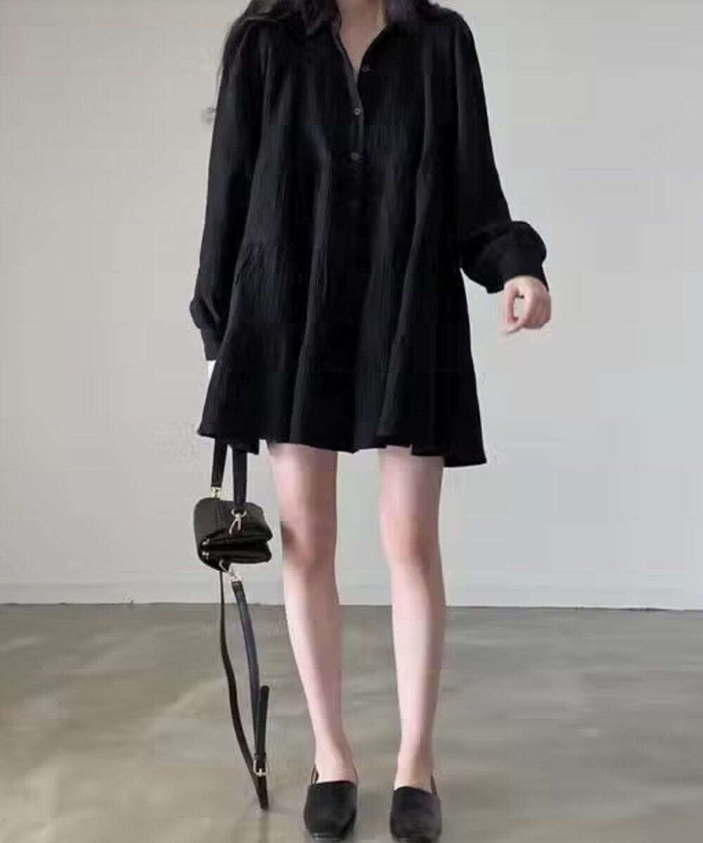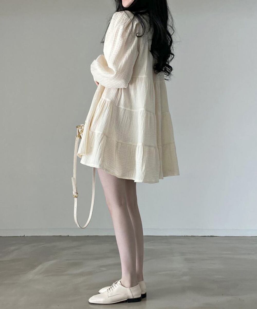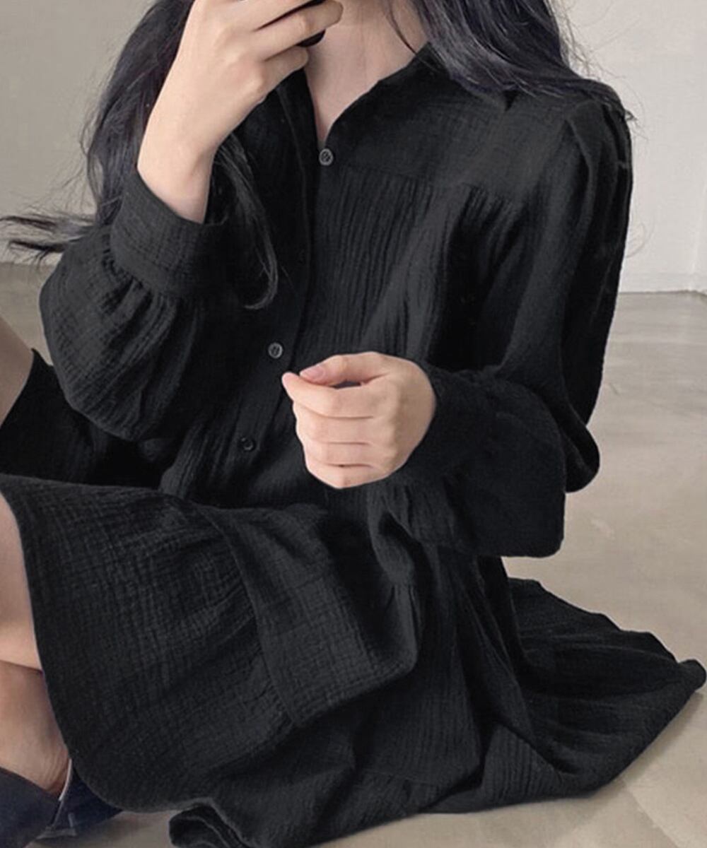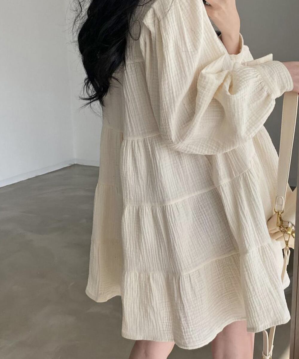 着やせ 長袖ワンピ パフスリーブワンピ ゆったり大人可愛い