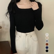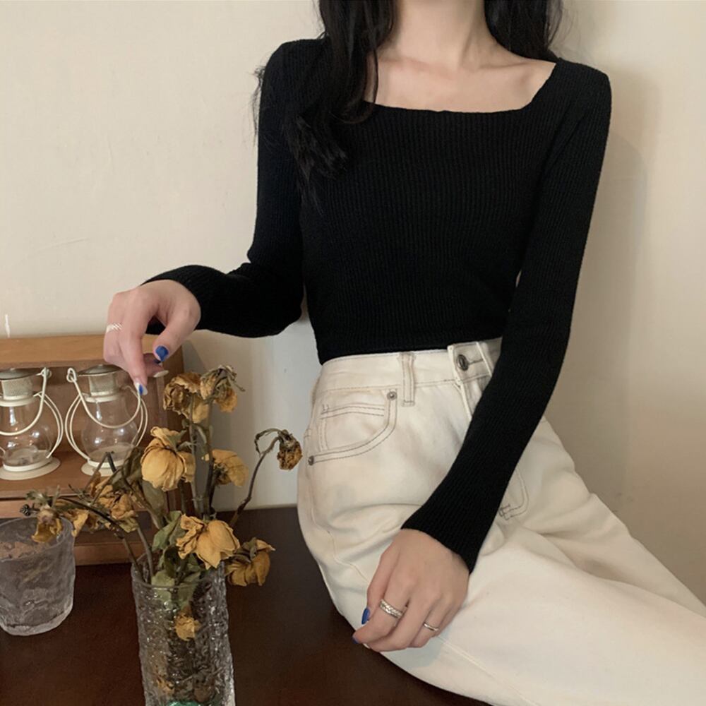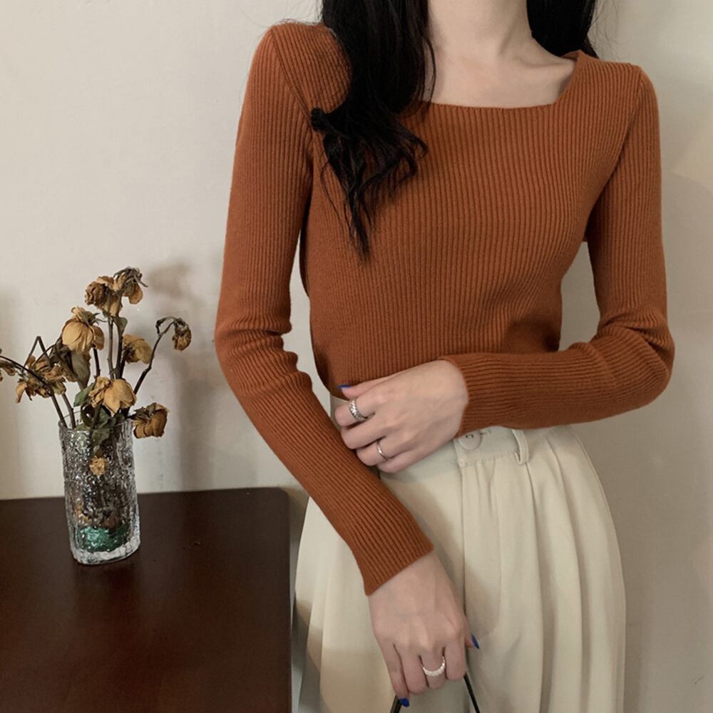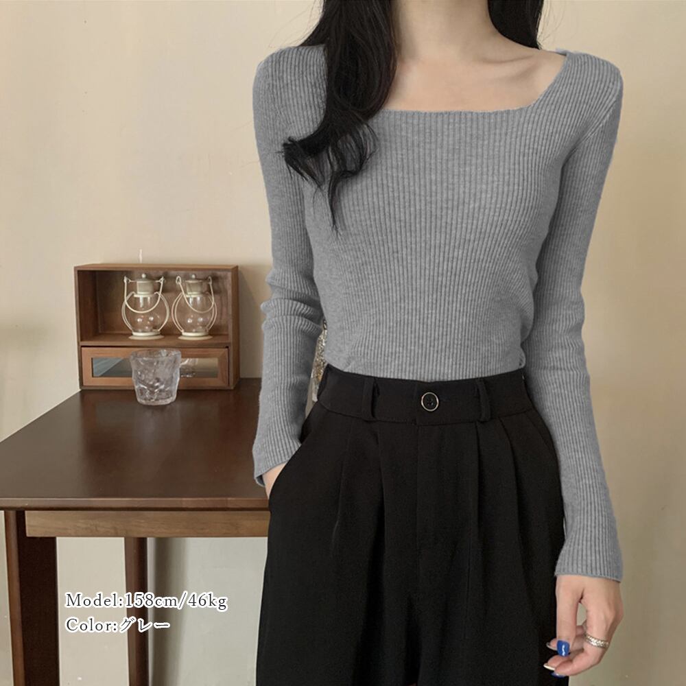 シンプル長袖ニット 着やせ リブニット 女性ニットソー無地