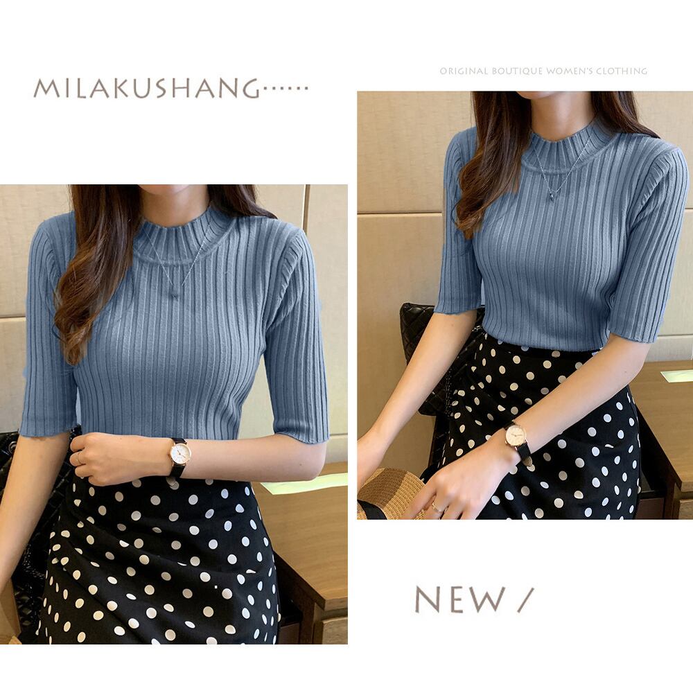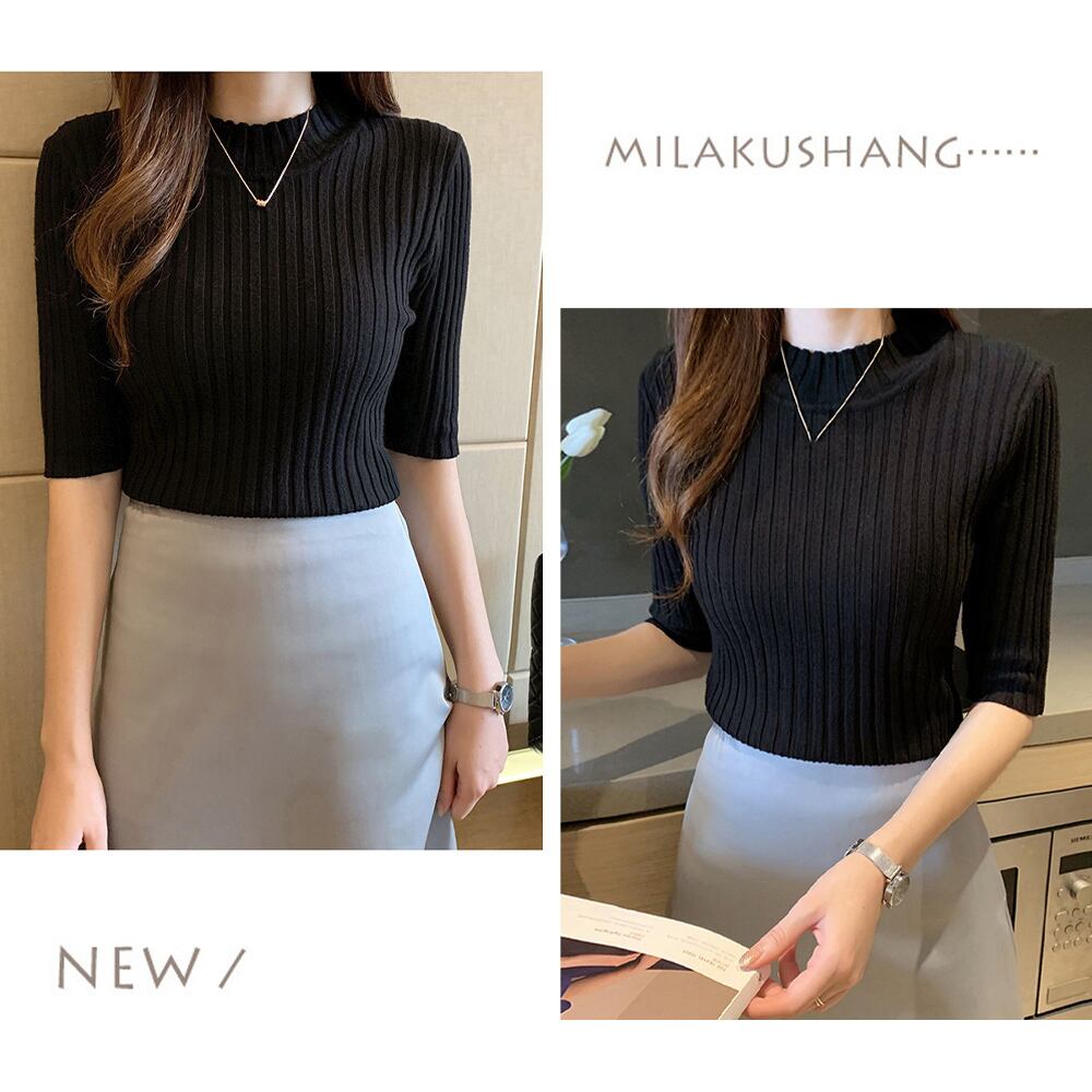 カラーニット 春 プチハイネック きれいめ サマーニット 韓国 無地 ニットカットソー細見えプルオーバー ニットインナー