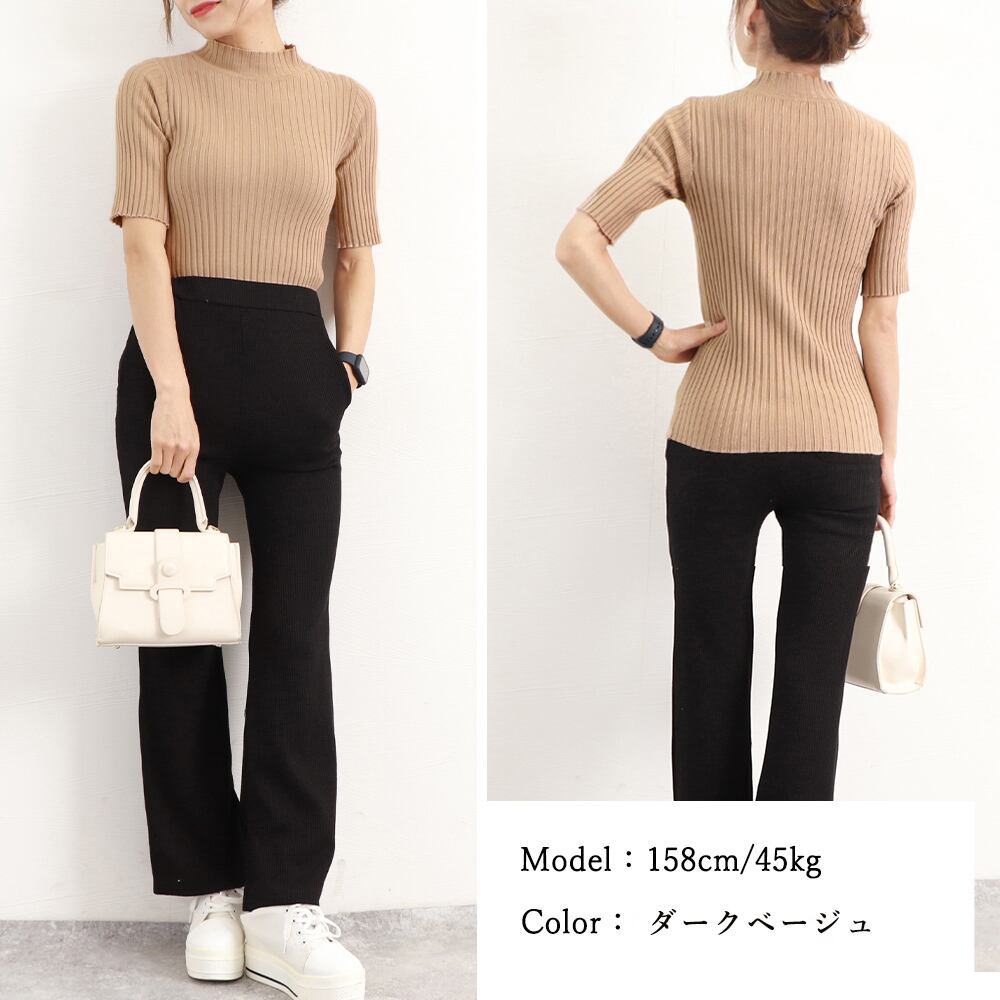 コンパクト ニット 五分袖 ニットソー ベーシック ニット