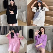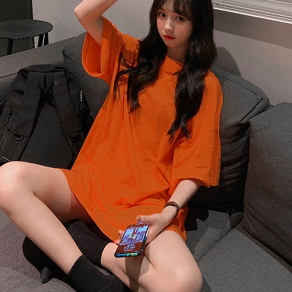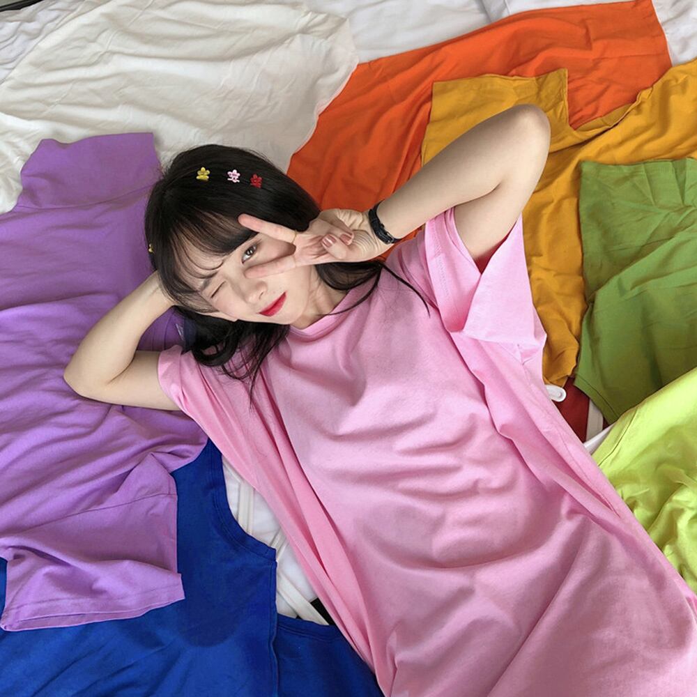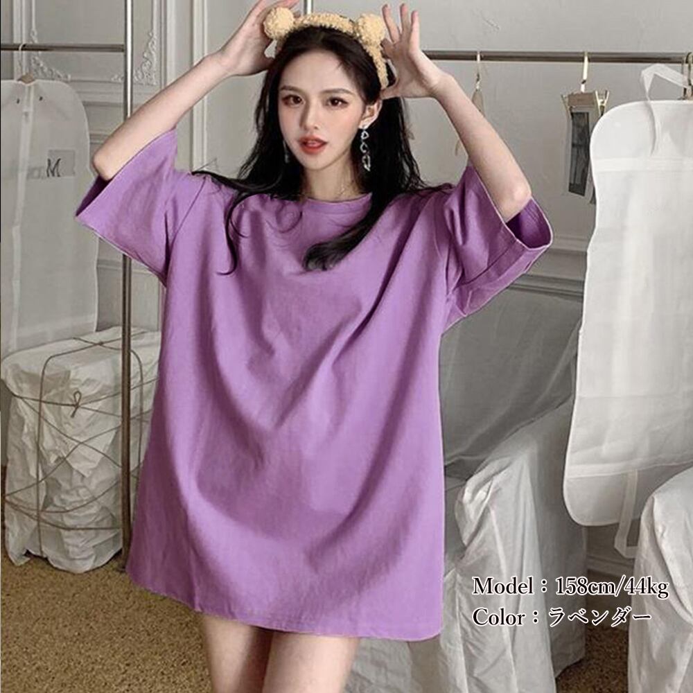 Tシャツワンピース ラウンドネック韓国 ゆるTシャツ着やせ
