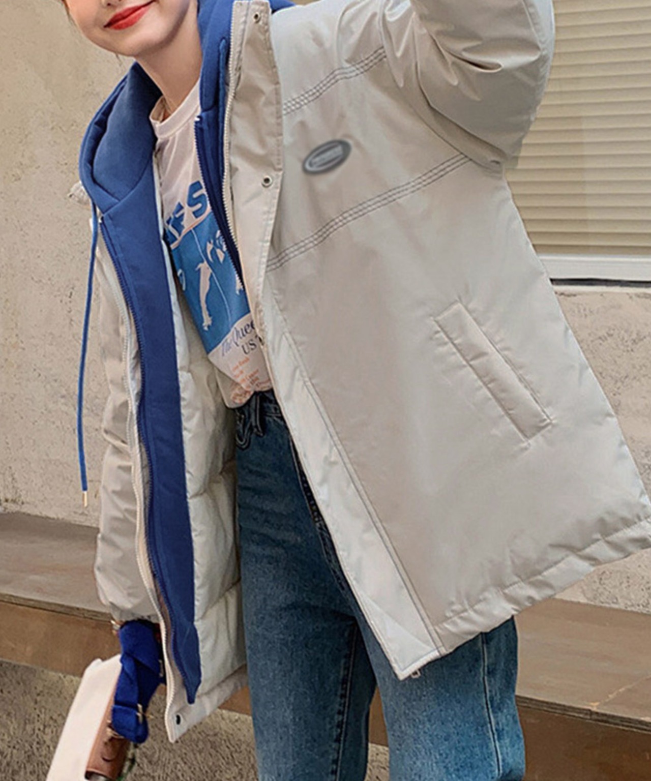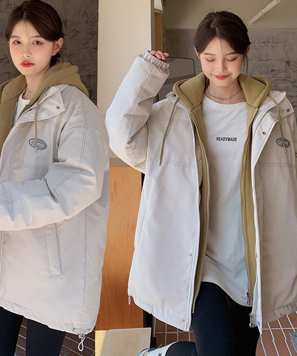 おしゃれ フェイクダウンジャケット レイヤード風 ダウンパーカー カジュアル フーディーブルゾン ゆったり 防風防寒冬服