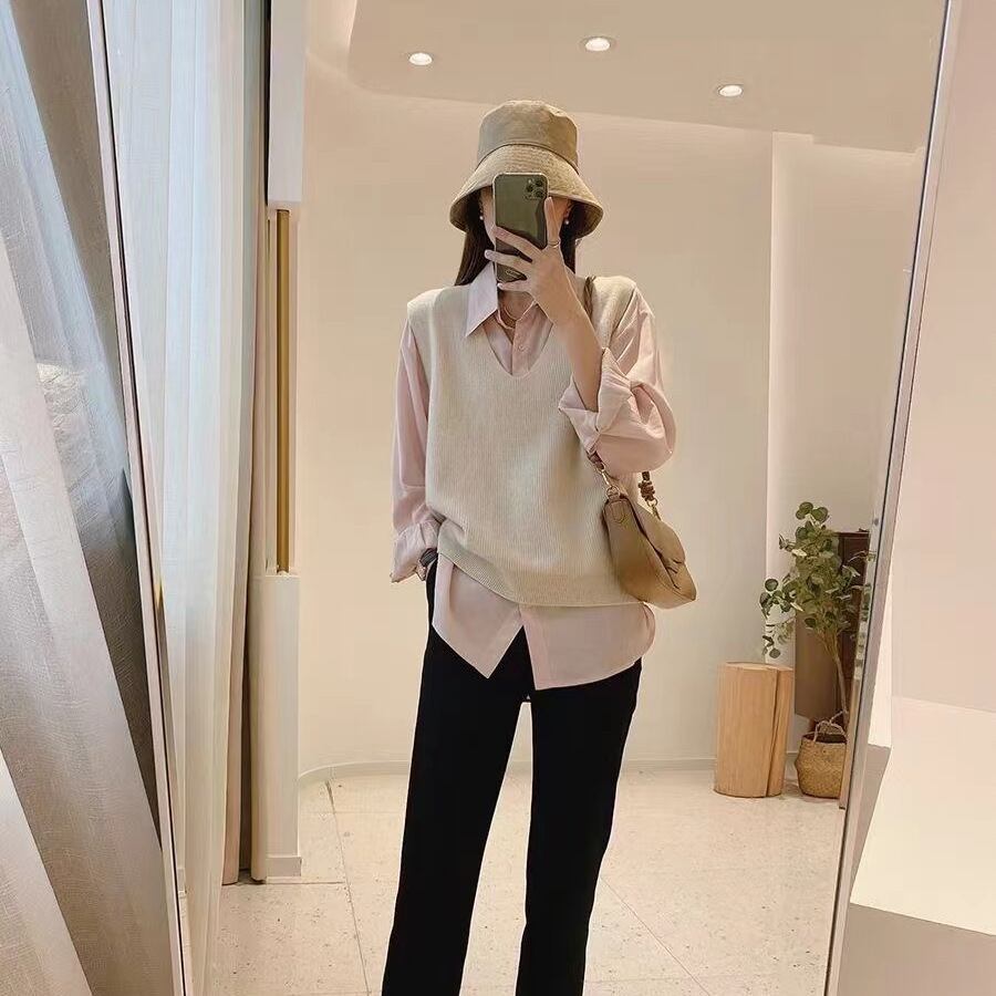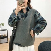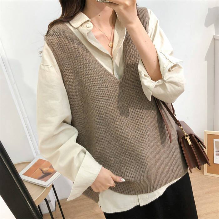 ・重ね着風スタイルの定番アイテムのニットベスト。