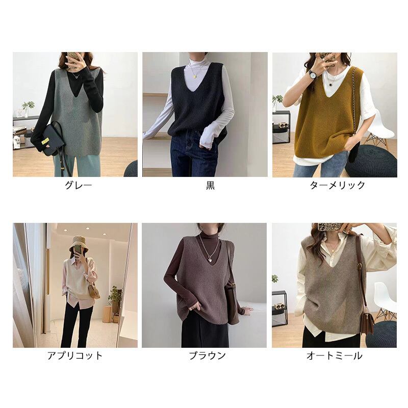 新作 レディース ニットベスト ジレ レイヤード 重ね着 トップス セーター チュニック Vネック 黒