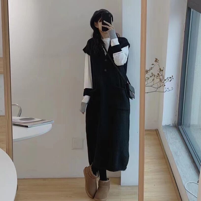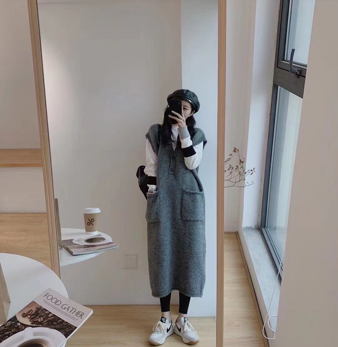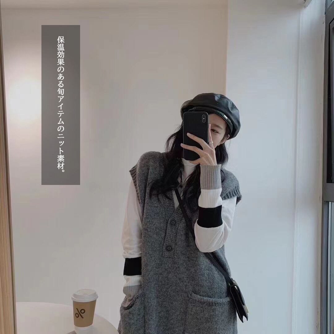 レディース ジャンパースカート ワンピース ニットベストノースリーブ 秋 冬 Vネック