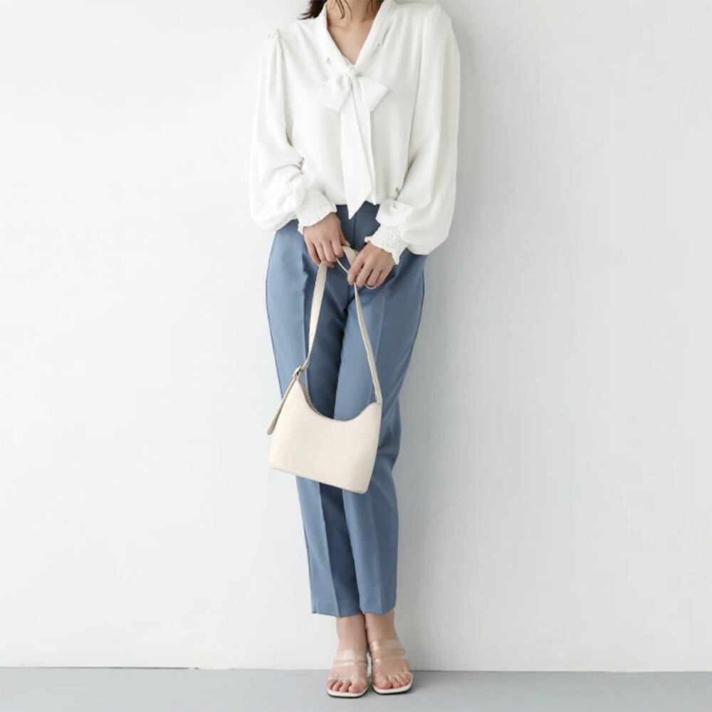 幅広い着こなしがかなう無地ブラウスは、大人のスタイルに取り入れやすく、どんなボトムでも相性抜群。