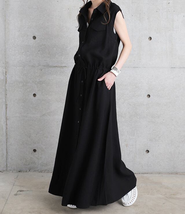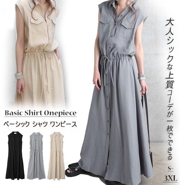 レディース シャツ ワンピース ノースリーブ ベーシック ナチュラル ロング