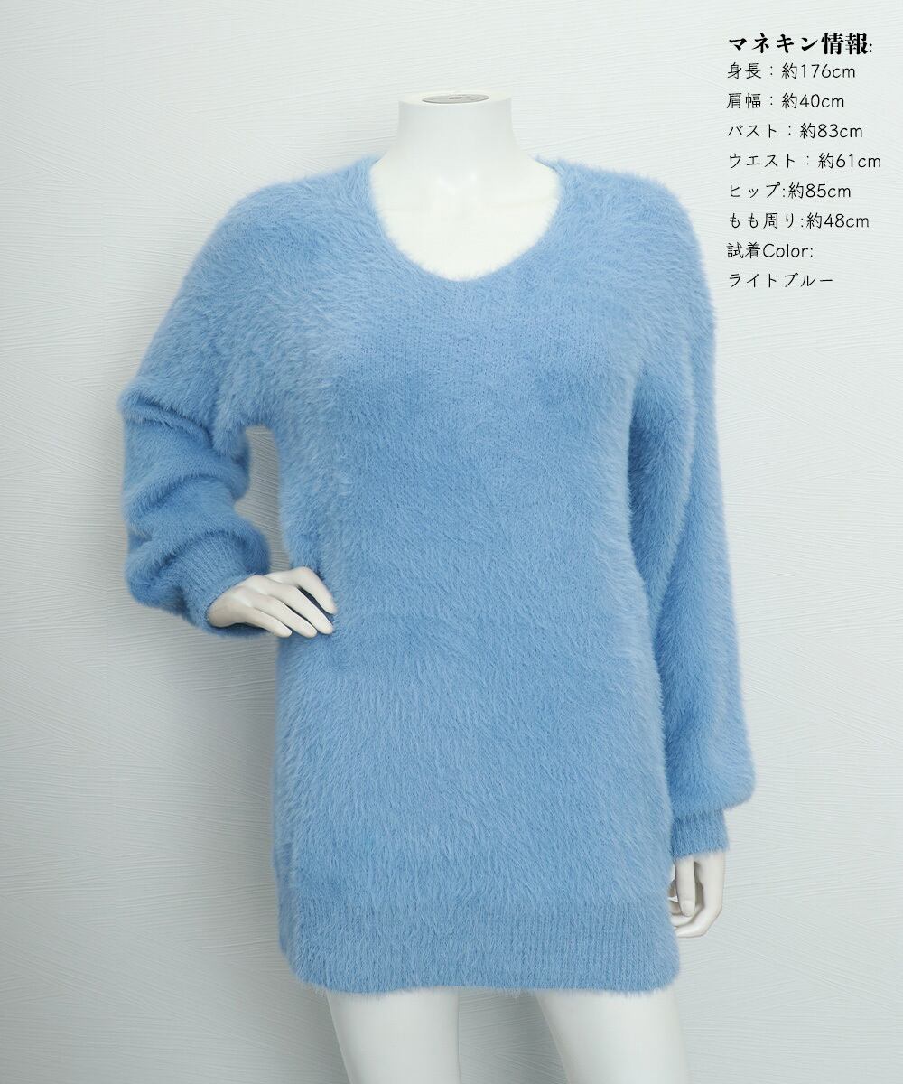 セータードレス 無地ワンピース Vネック ゆったり シャギー 着回し 大人 シンプル カジュアル セクシー きれいめ