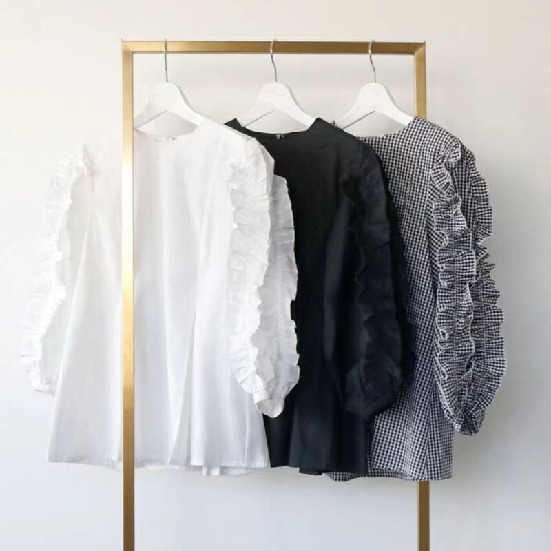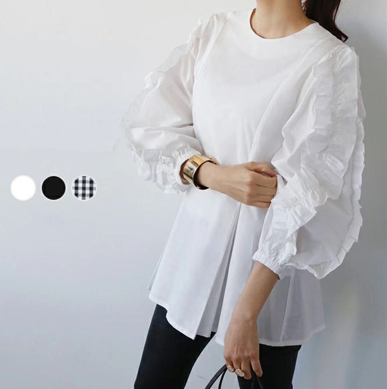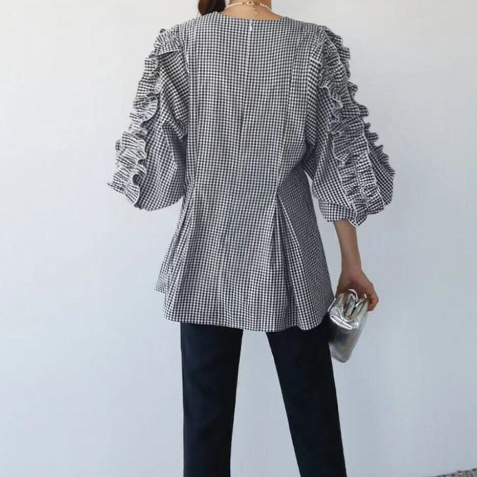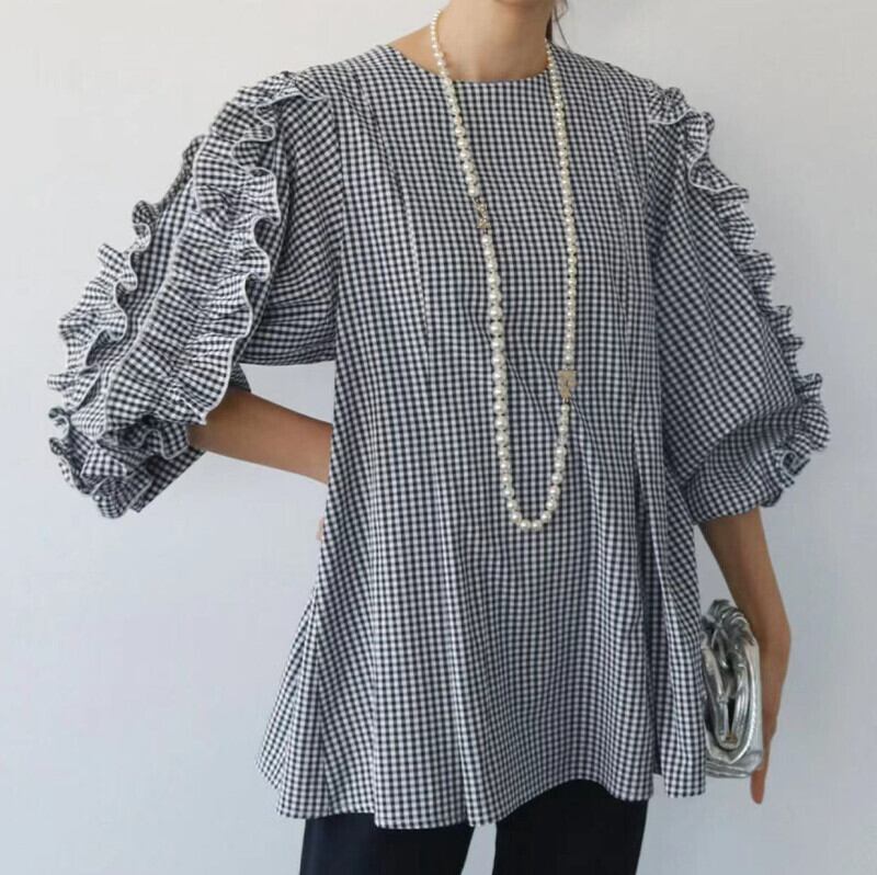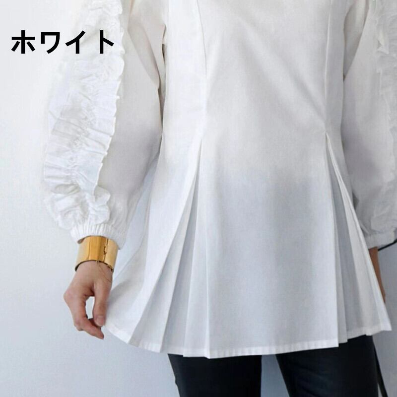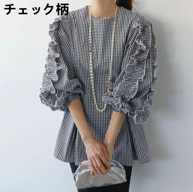 春夏新作 ブラウス 韓国風 レディーストップス 人気シャツ ラウンドネック ランタンスリープ