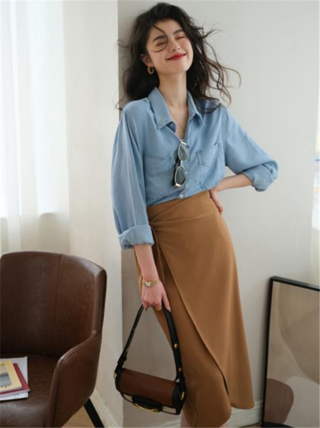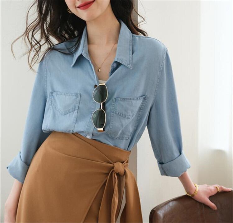夏新作 レトロ 気質 デザインセンス トップス デニム シャツ レディース