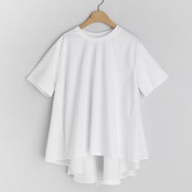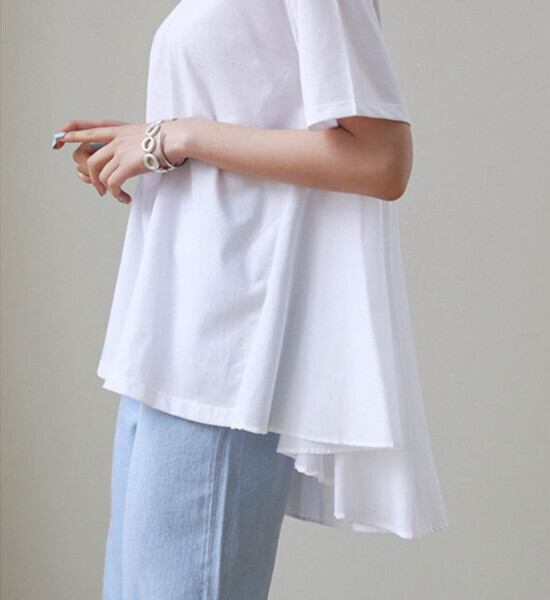 フレア裾のデザインがトレンド感たっぷりに仕上げたTシャツ。