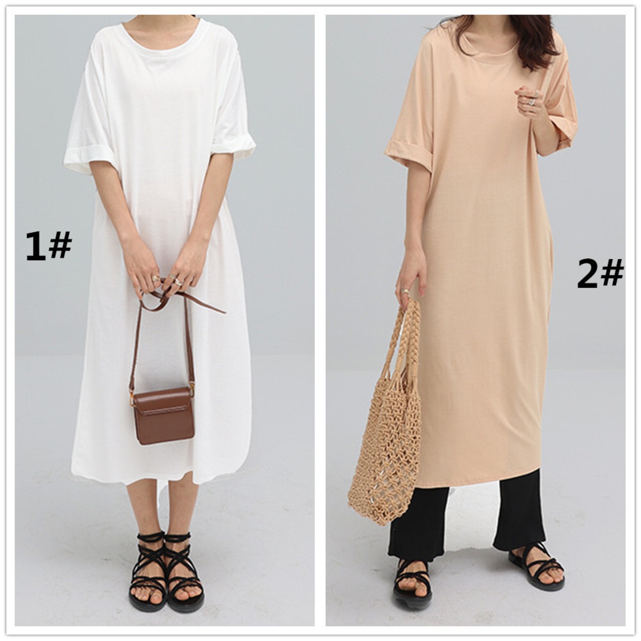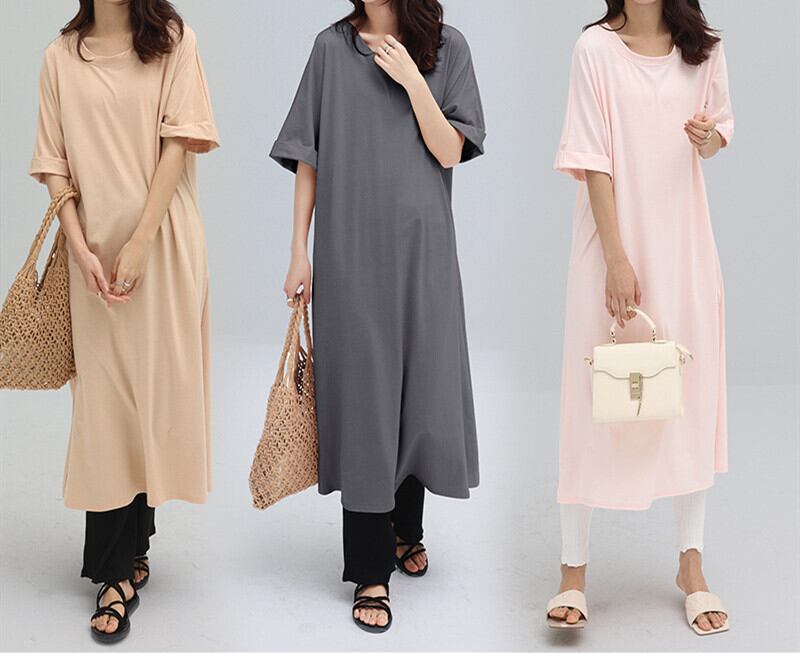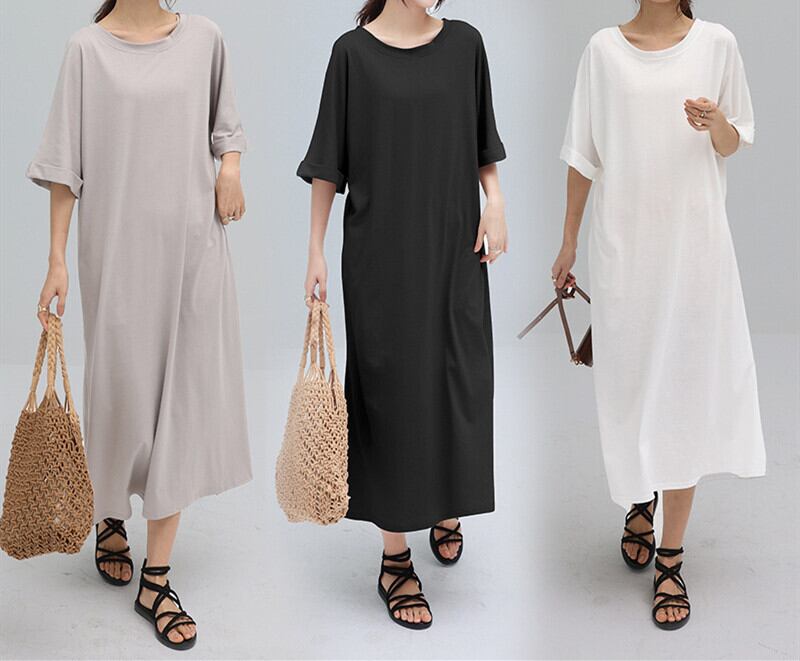 ワンピース Tシャツ ラウンドネック Tシャツワンピース レディース ロングワンピース ゆるシルエット