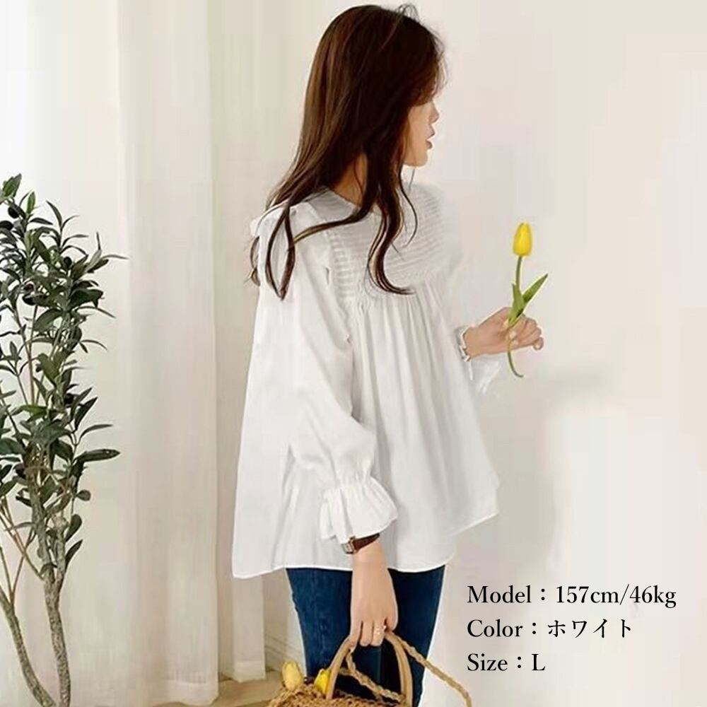 キャンディスリーブ シャツブラウス 春秋夏 長袖トップス きれいめ タックブラウス オフィスカジュアル 韓国ファッション