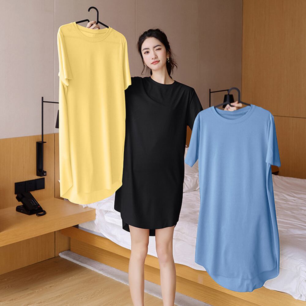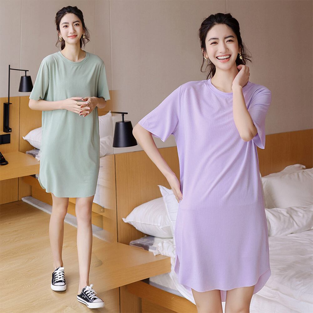 細かいリブのデザインでサラサラで肌触りが良くで涼しいTシャツワンピース