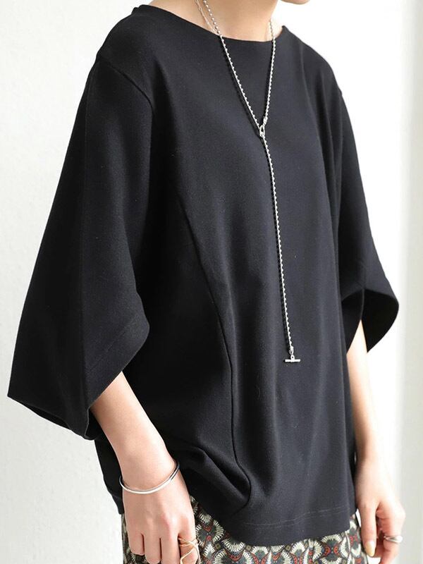 ラウンド トプッス シンプル 半袖 レディース 無地 カジュアル