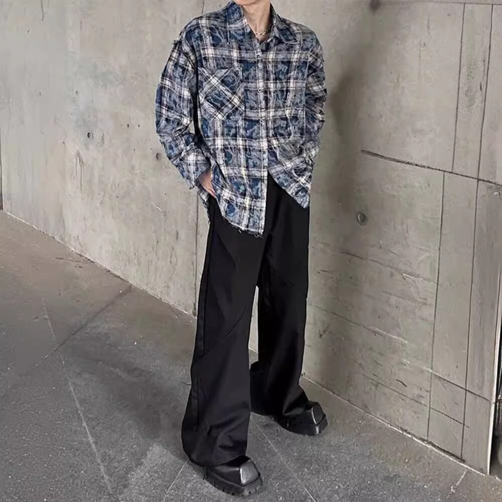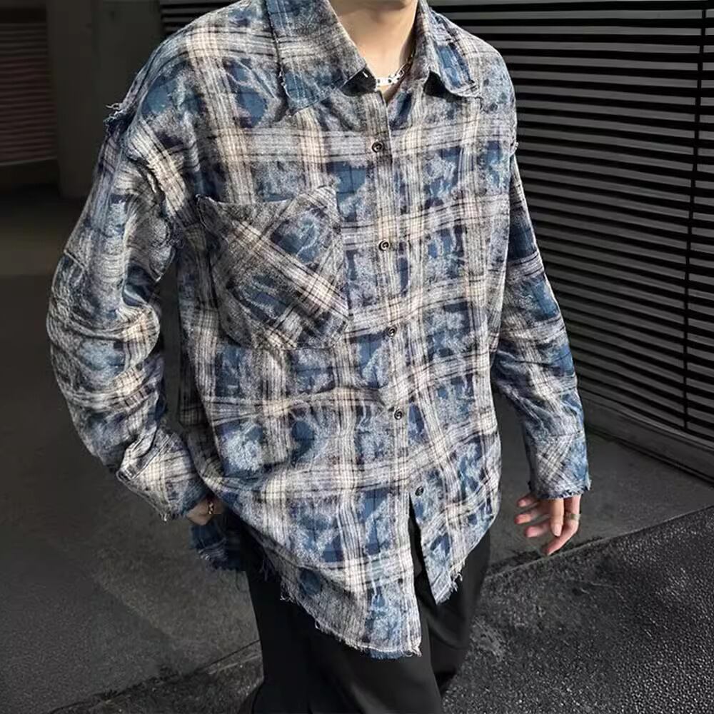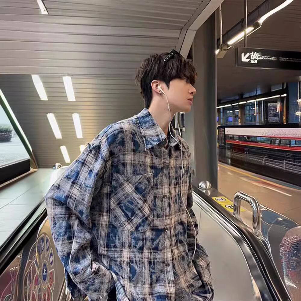メンズ用トップス・シャツ・ 格子柄長袖・アウター・気質・カジュアルシャツ・M~3XL 2色