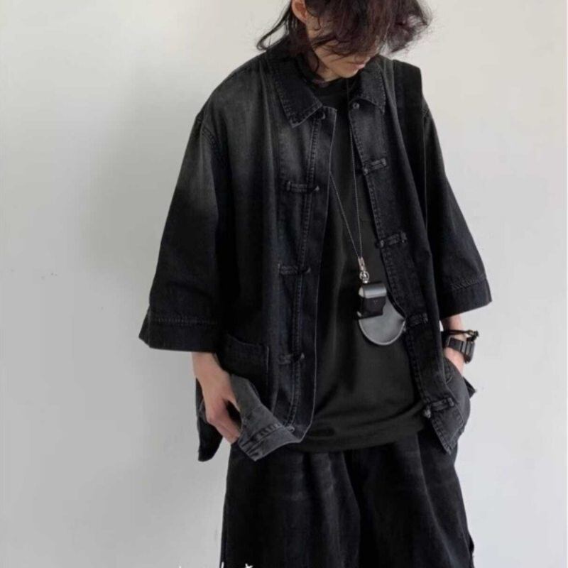 トップス アウター ジャケット デニムアウター 中国風 チャイナ風 メンズ