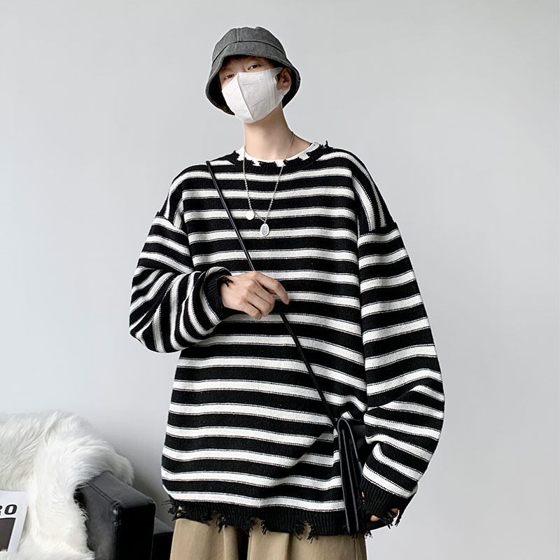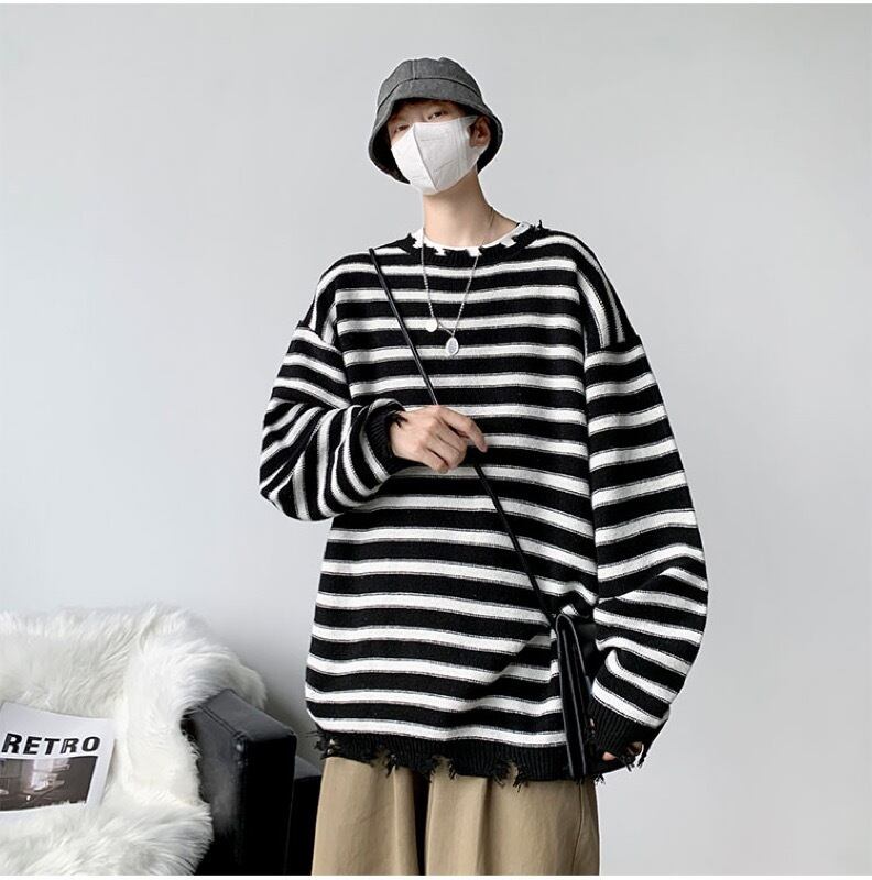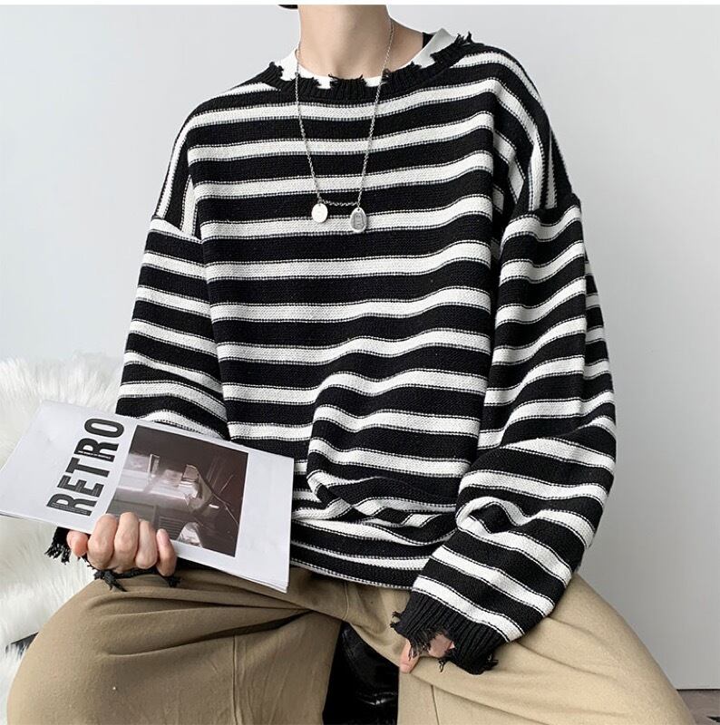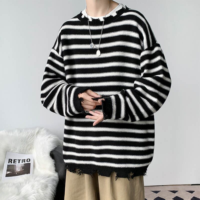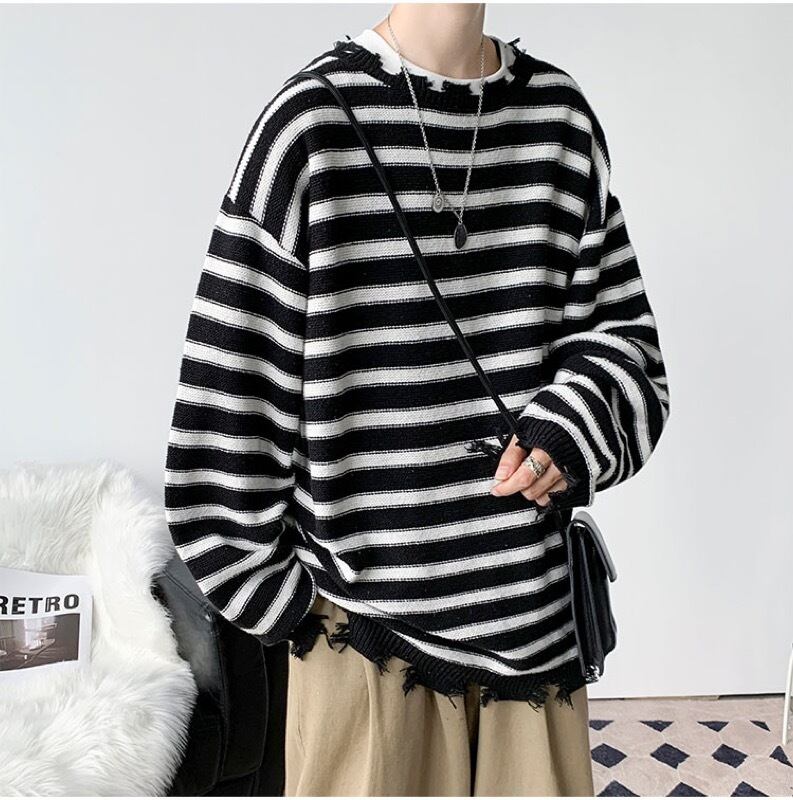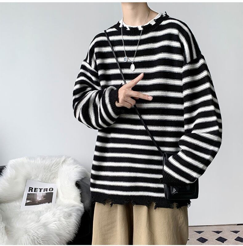 トップス ニット セーター ボーダー クルーネック ラウンドネック 毛糸 長袖 メンズ
