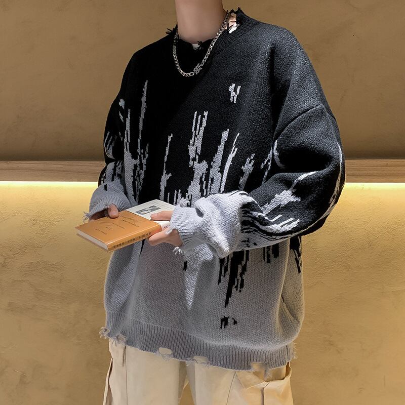 メンズ用トップス・ゆとり・ニット・ セーター・気質・毛糸 ・長袖・M~2XL 2色