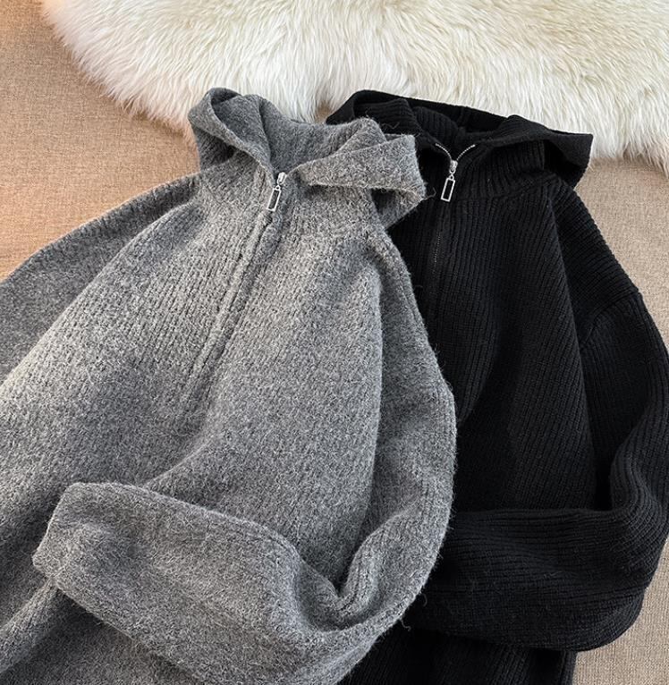 秋冬新作 メンズ 男 ニット 毛糸 トップス 帽子付け 長袖 セーター カットソー カーディガン