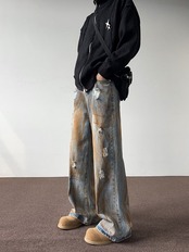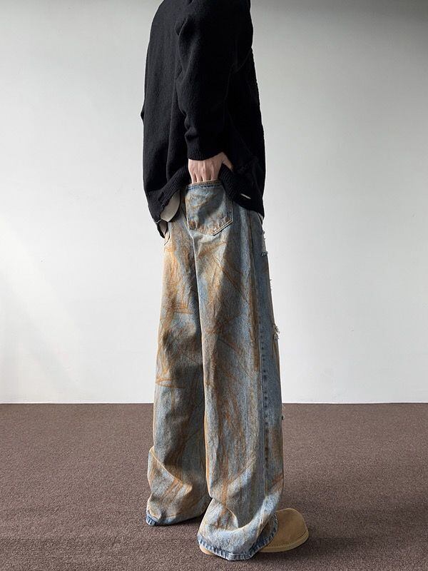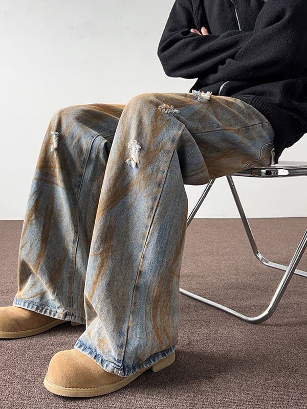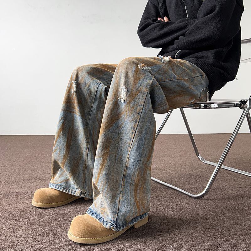 パンツ ボトムス デニム ジーンズ ズボン ダメージ加工 ストレート メンズ