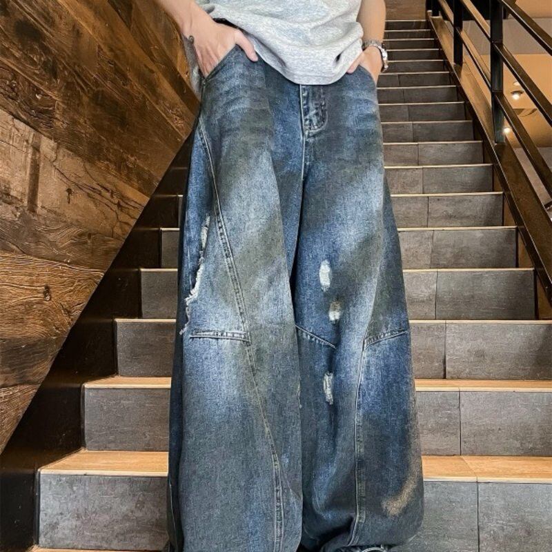 パンツ ボトムス デニム ジーンズ ダメージ加工 ゆったり メンズ