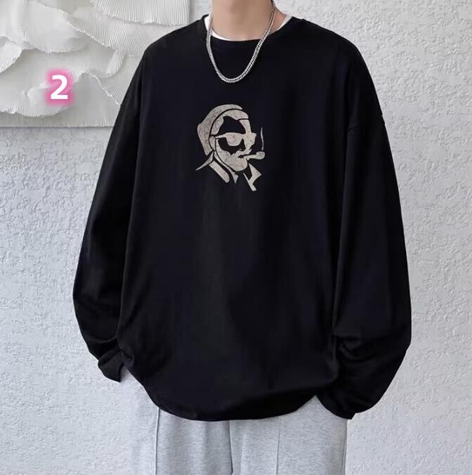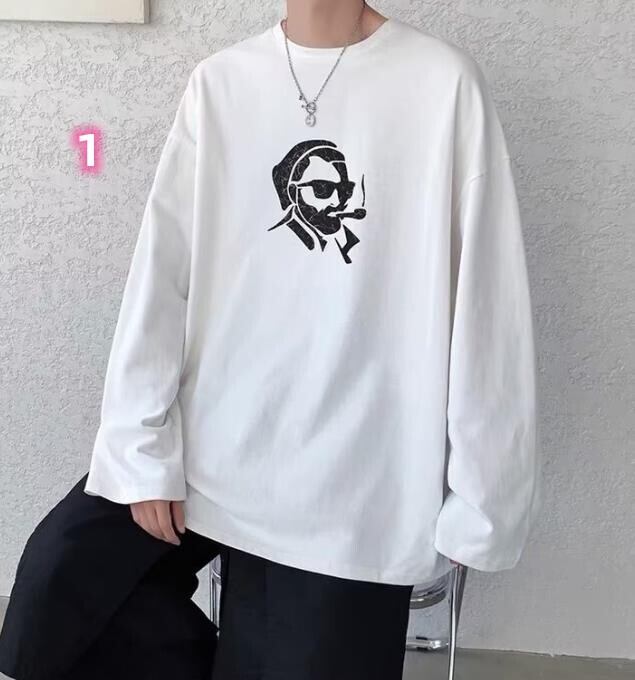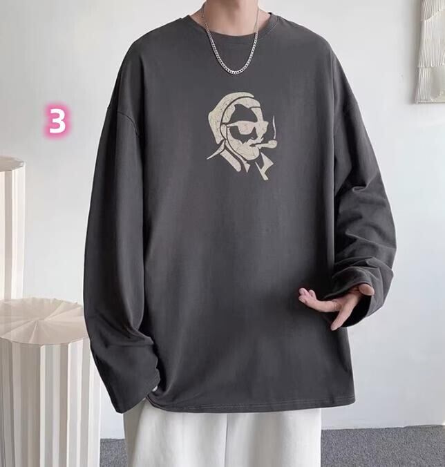 春秋新作 メンズ 男 カジュアル 長袖 丸首 プリント トップス Tシャツ インナー M-5XL