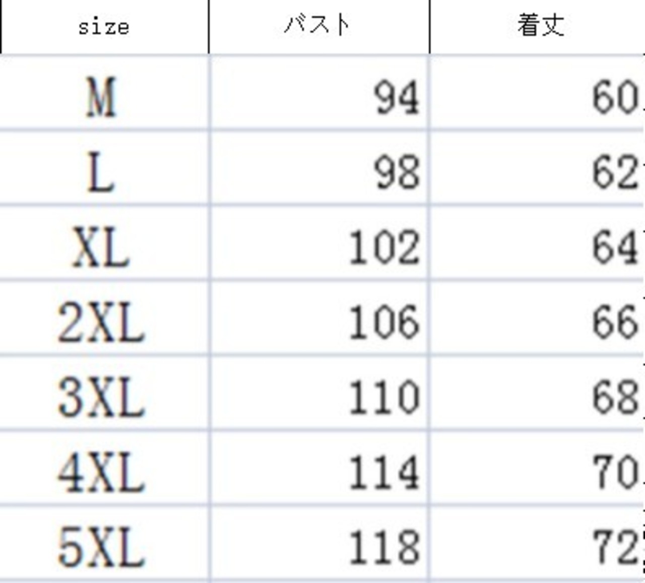 サイズ:M/L/XL/2XL/3XL/4XL/5XL