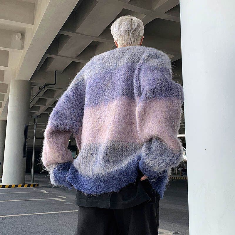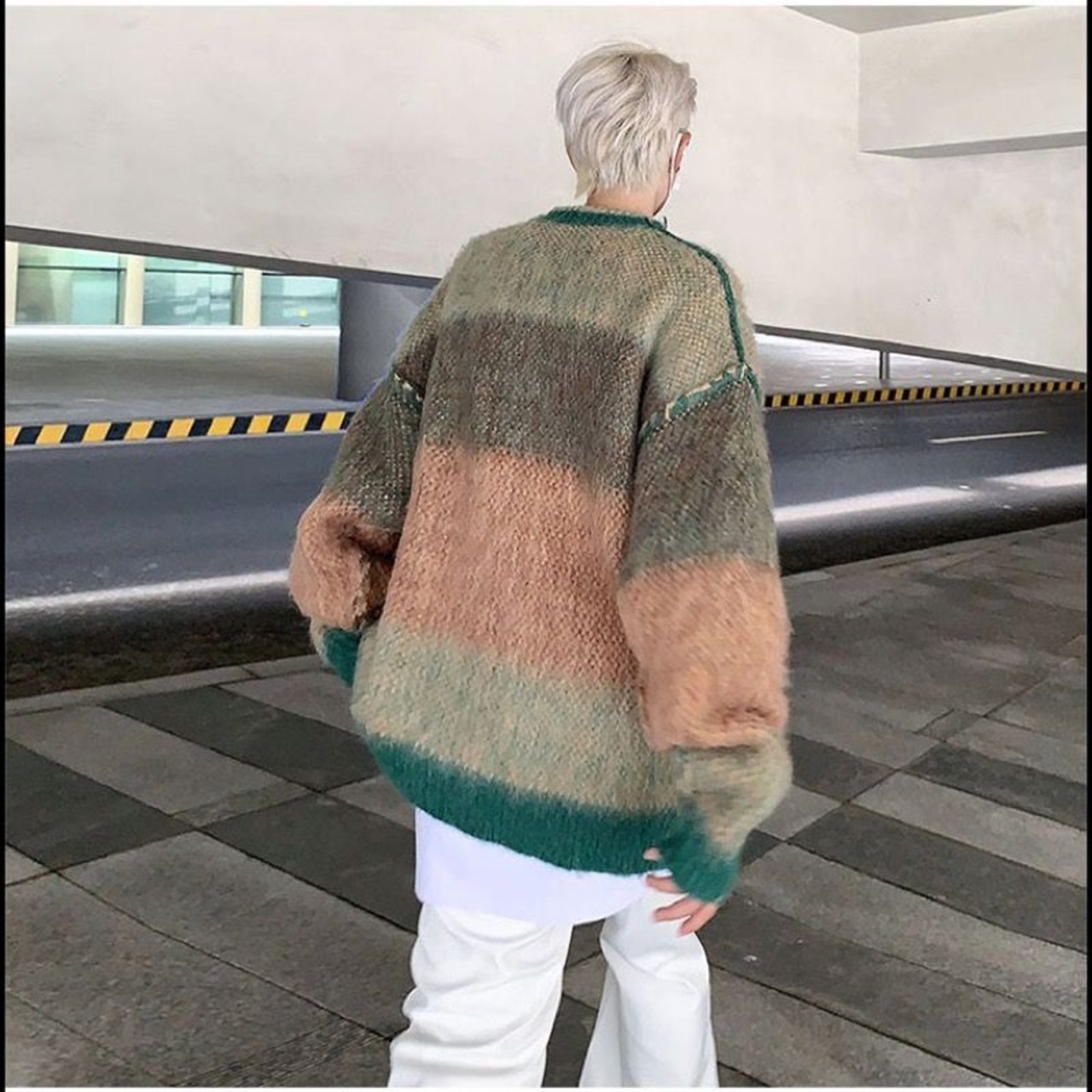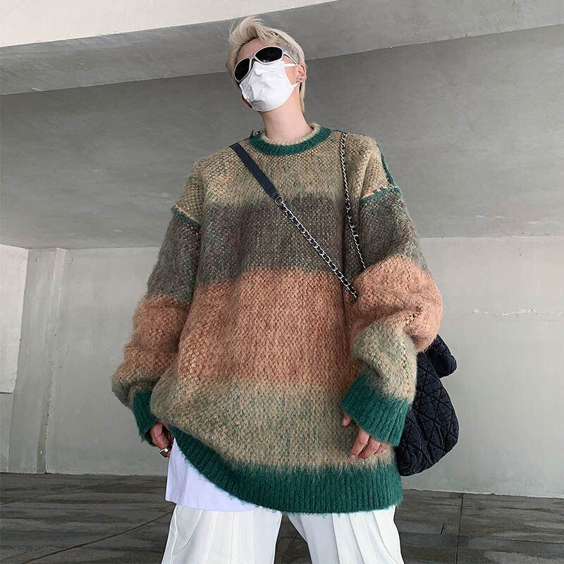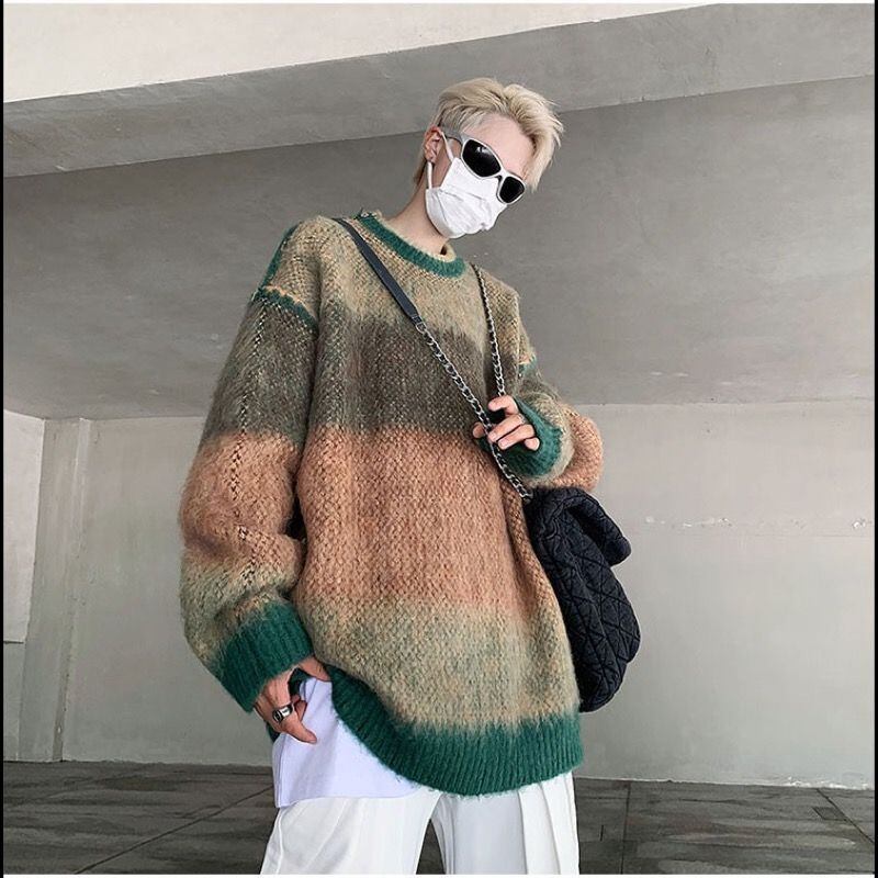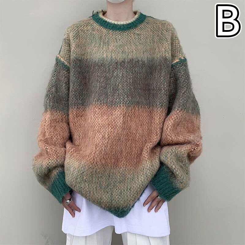 トップス ニット セーター 毛糸 起毛 クルーネック ラウンドネック ボーダー