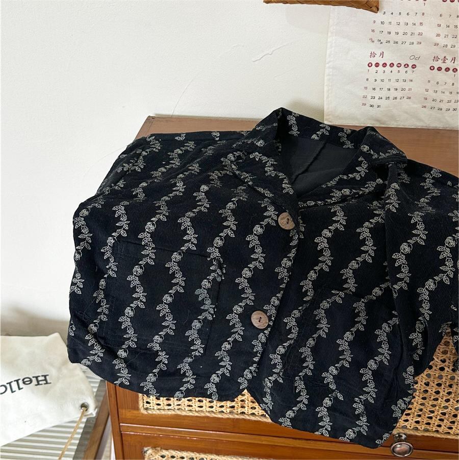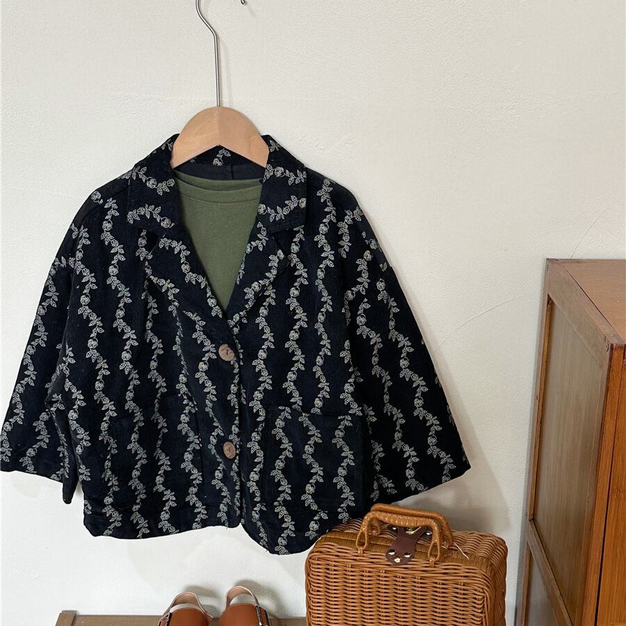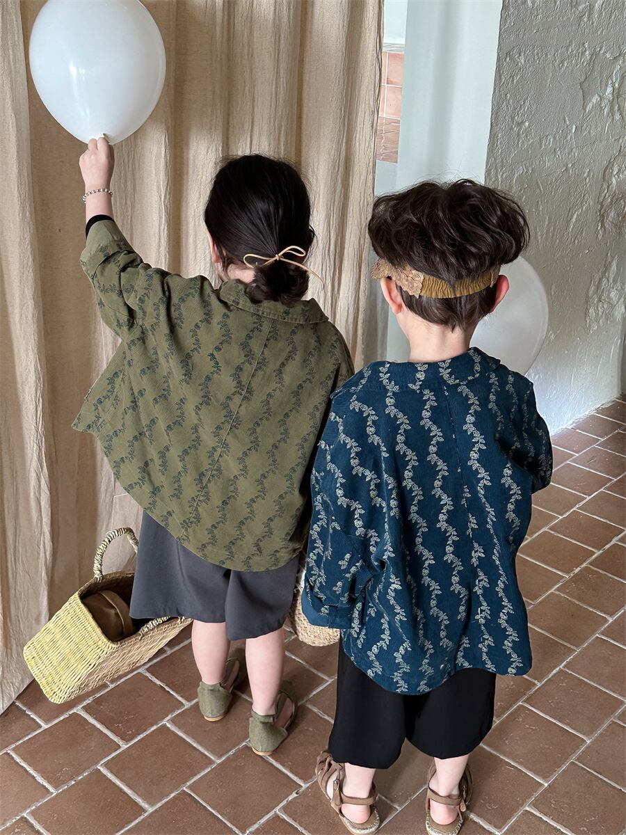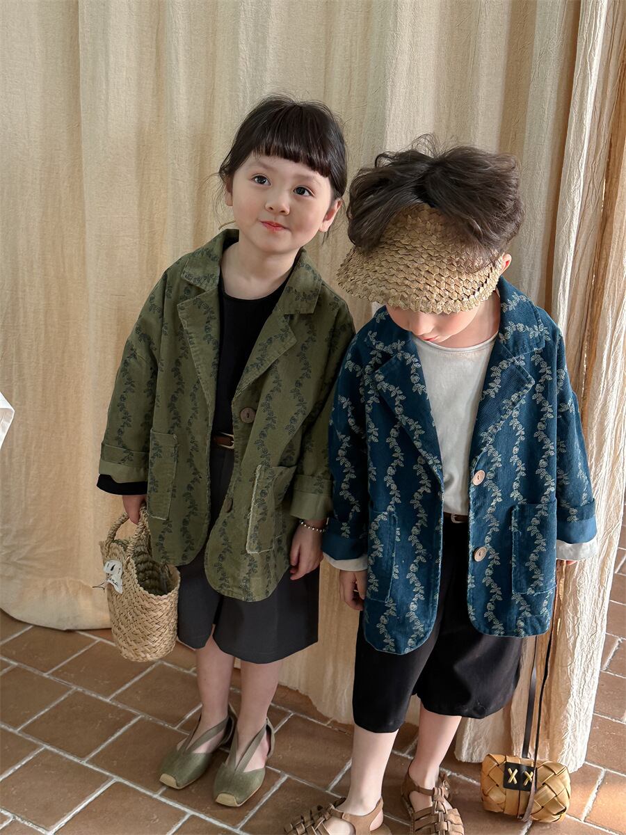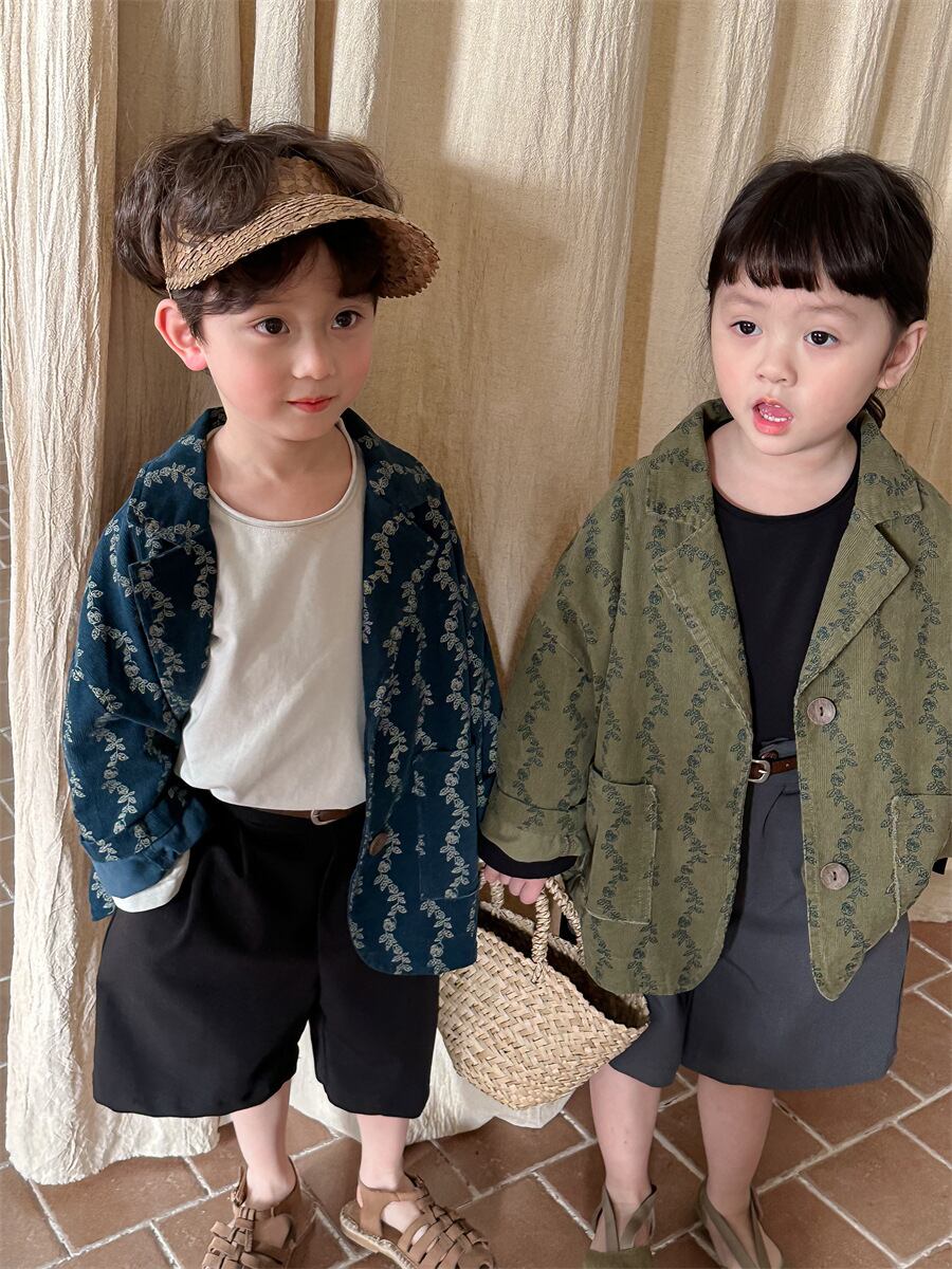 新作 ユニセックス 韓国風子供服 小花柄 チェスターコート コーデュロイ ジャケット ブレザー 3色 80-140