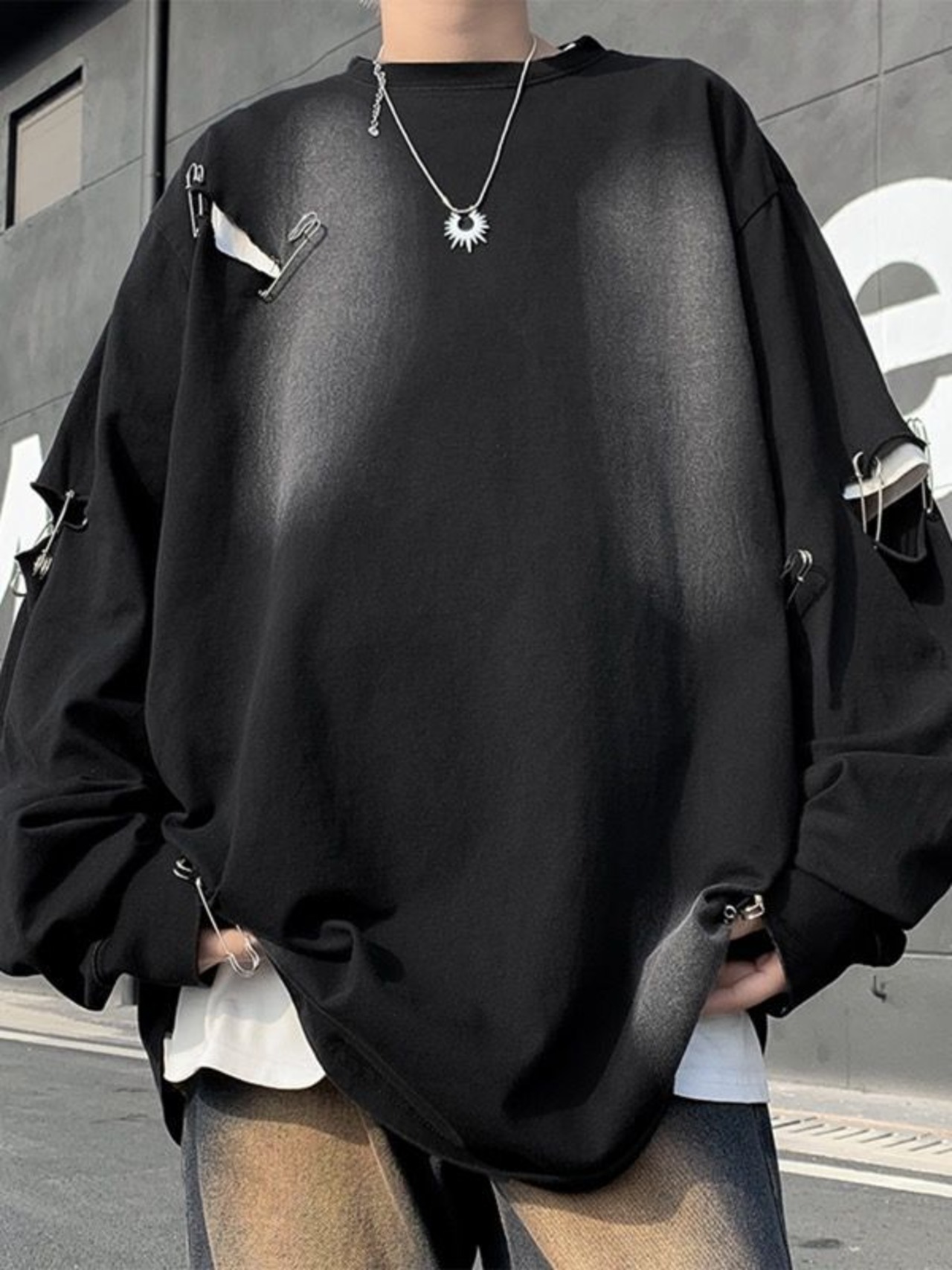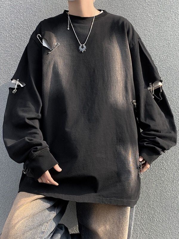 トップス カットソー スウェット ロンT Tシャツ ダメージ加工 クルーネック