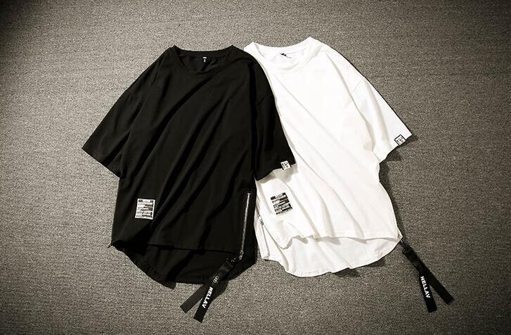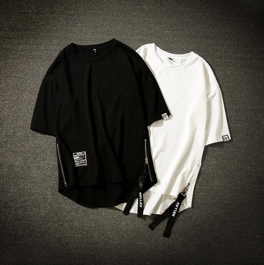 Tシャツ ロング丈半袖Tシャツ サイドファスナー メンズ夏服