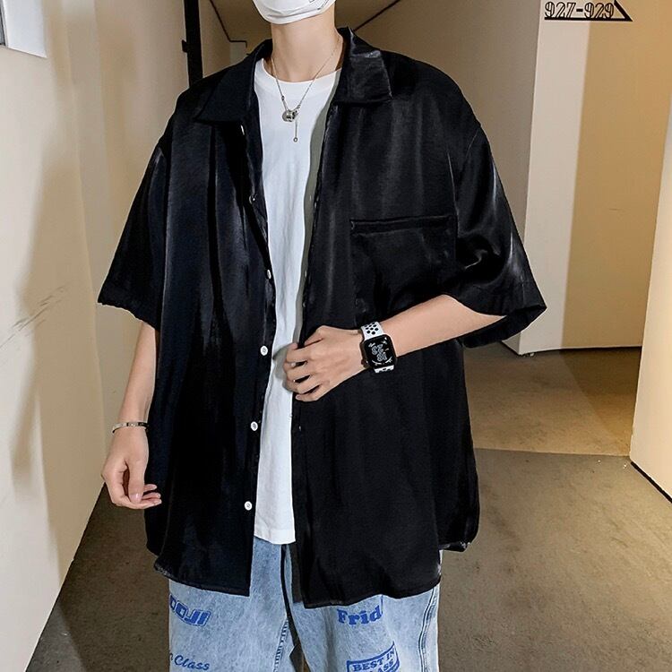 トップス 冷感シャツ カジュアルシャツ 光沢 ツヤ メンズシャツ 半袖