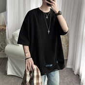 全2色・メンズ・Tシャツ・ブラウス・夏新作 ・ゆとり・気質・半袖・トップス・M-3XL