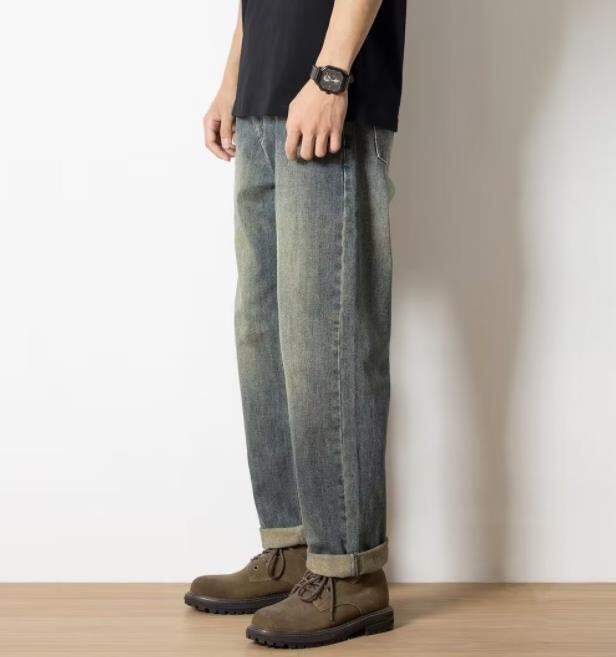 春秋新作 ボトムス カジュアル メンズ デニム パンツ スラックス ジーンズ ワイドパンツ 男