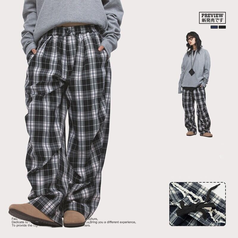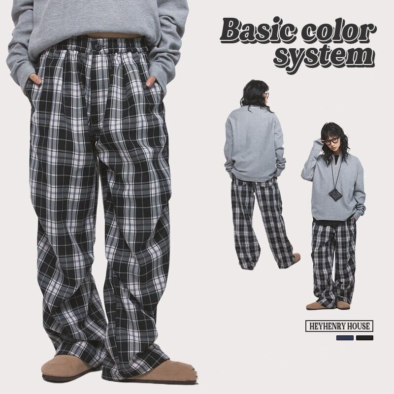 メンズ レディース 新作春夏 チェック ワイド ストレートペアルック ボトムズ カジュアル