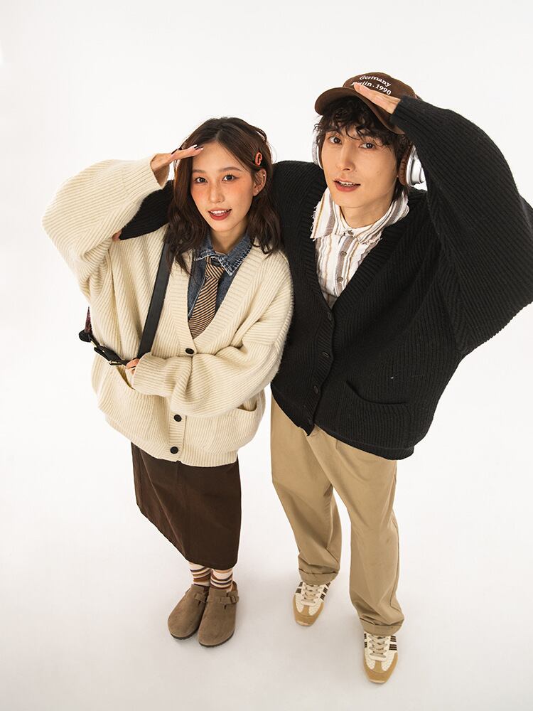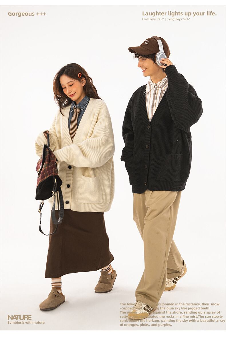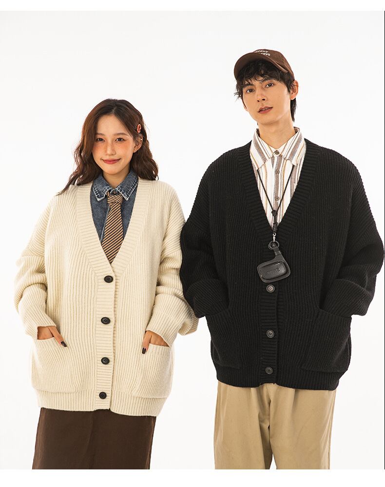 メンズ セーター 新作 ニット長袖 韓国風 ペアルック純色 カーディガン 男女通用