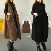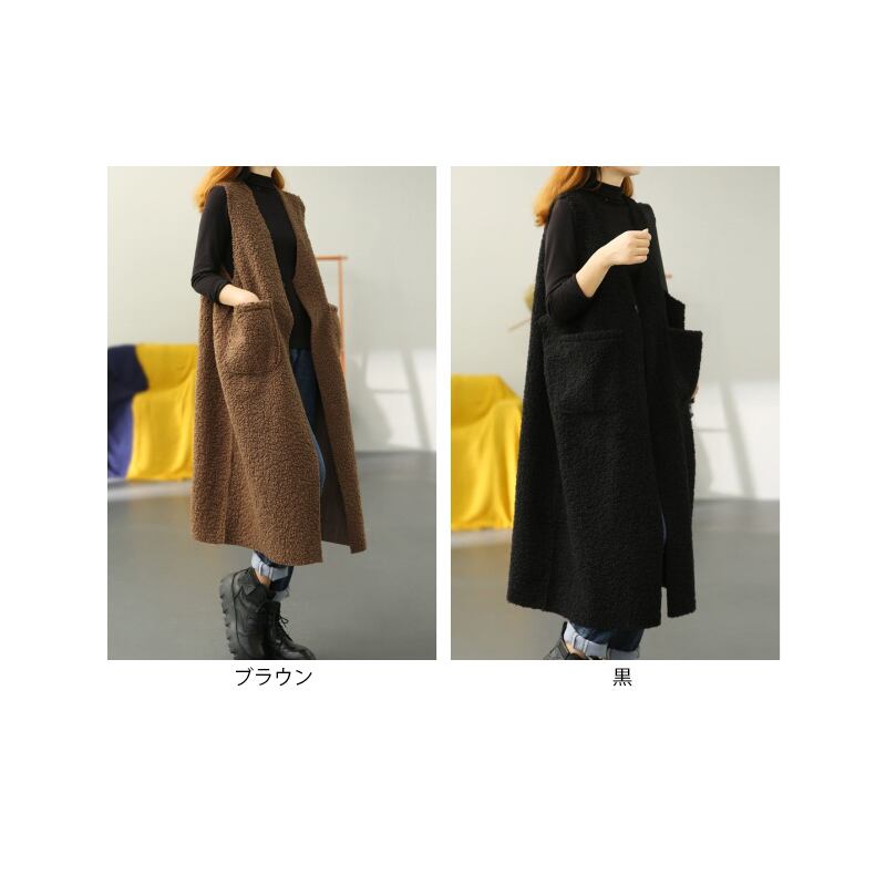 新作秋冬 プードルファーベスト アウター ノースリーブ ロングベスト 防寒 ムートン調