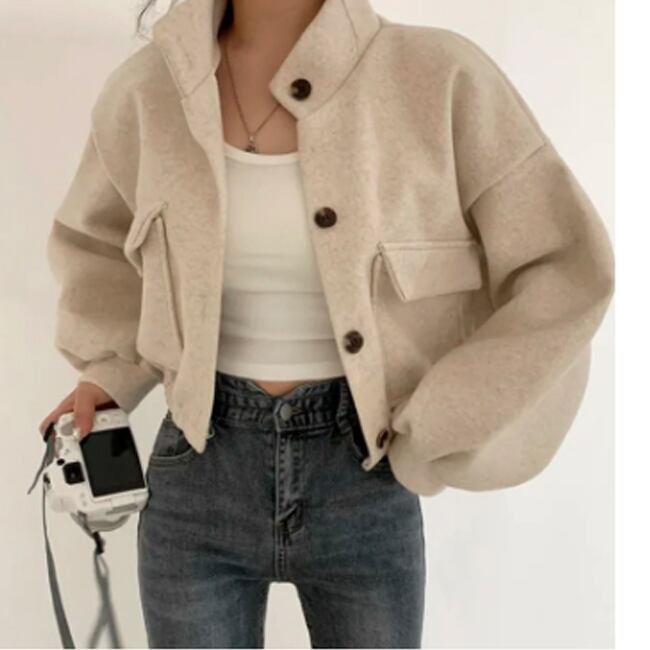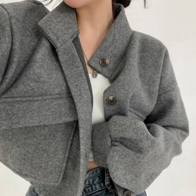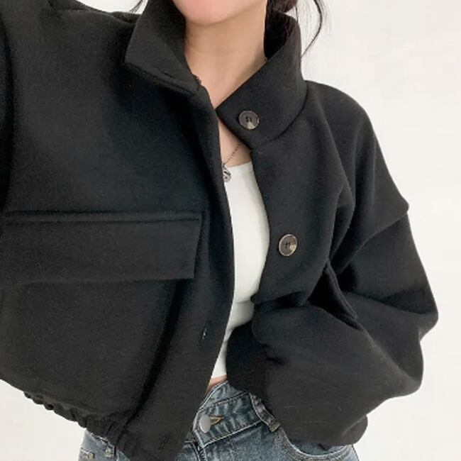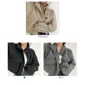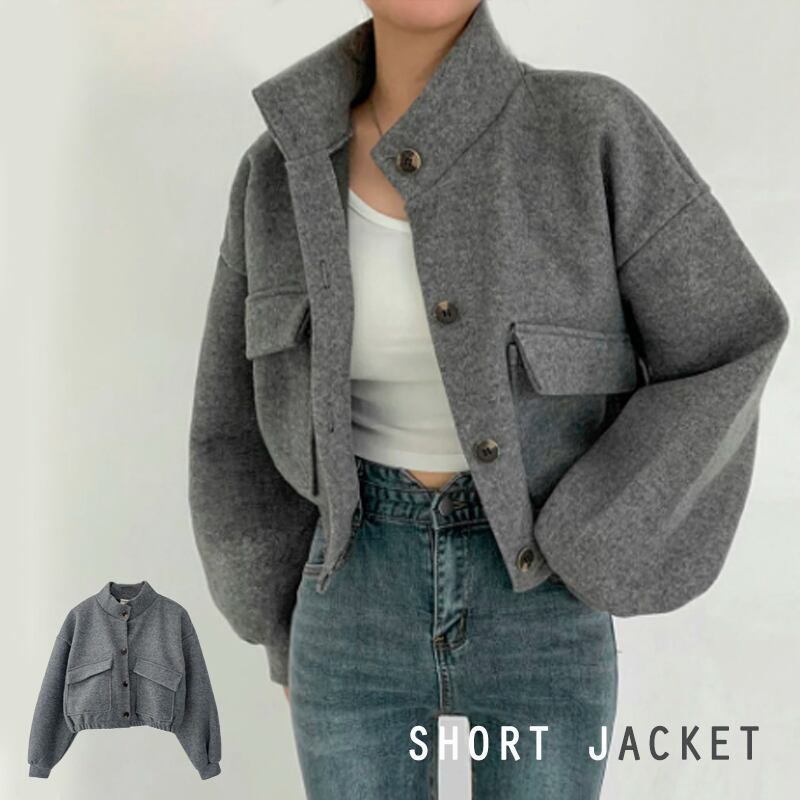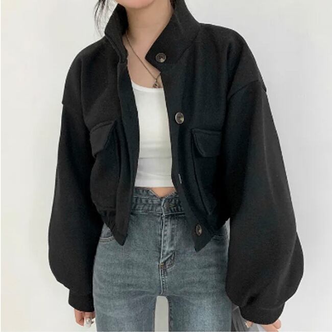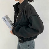 新作 レディース ブルゾン アウター スタンドカラー ショート丈 クロップド丈 黒 ブラック グレー