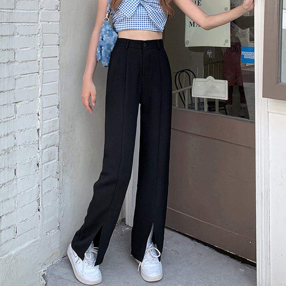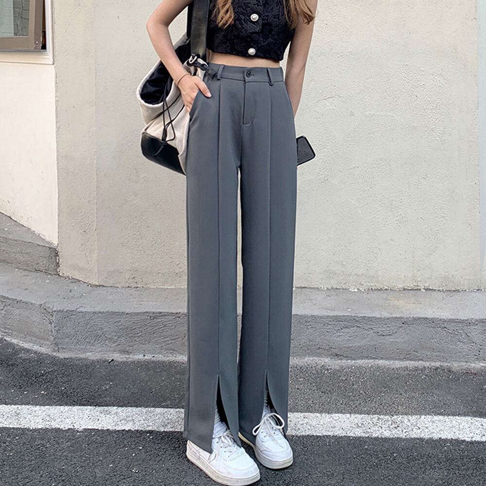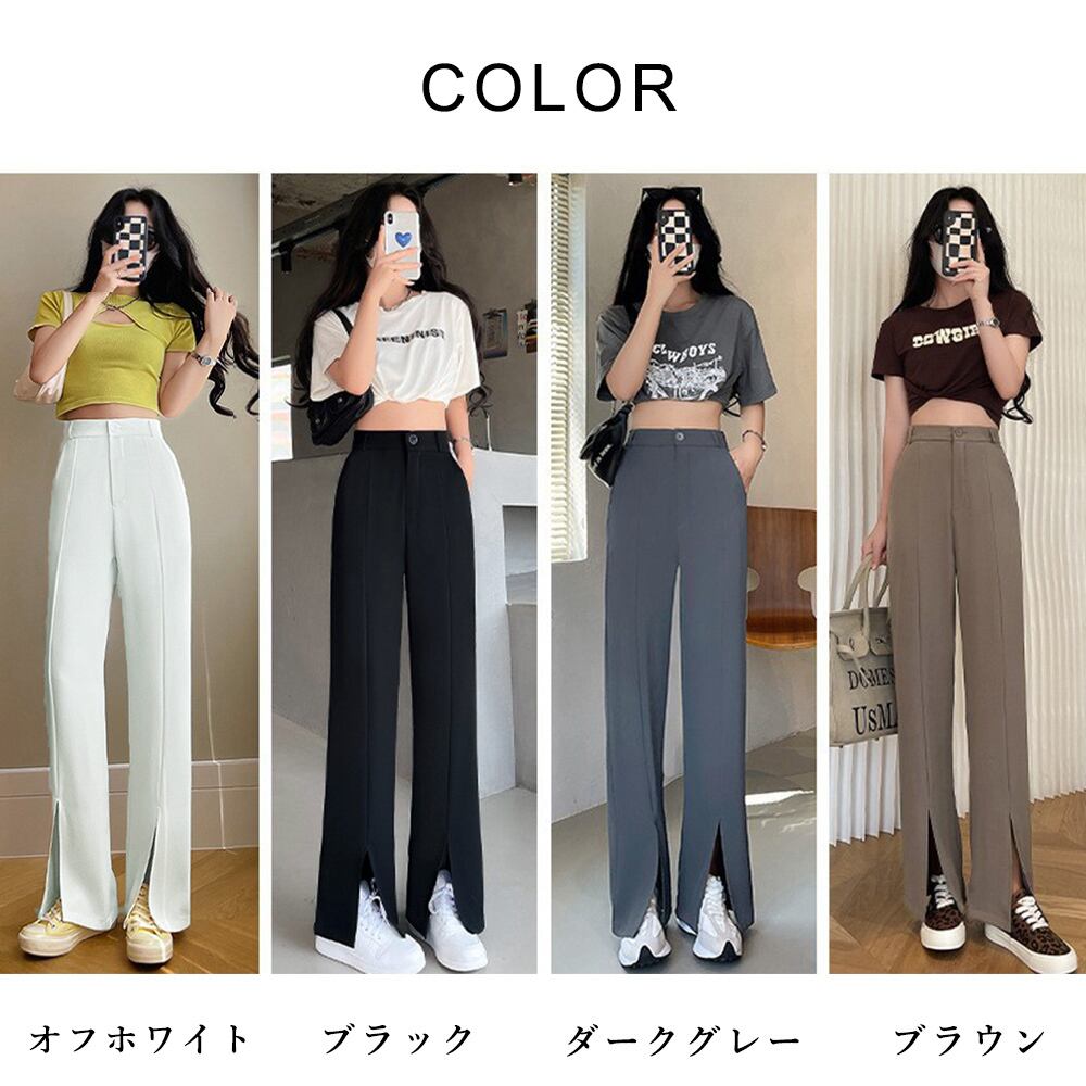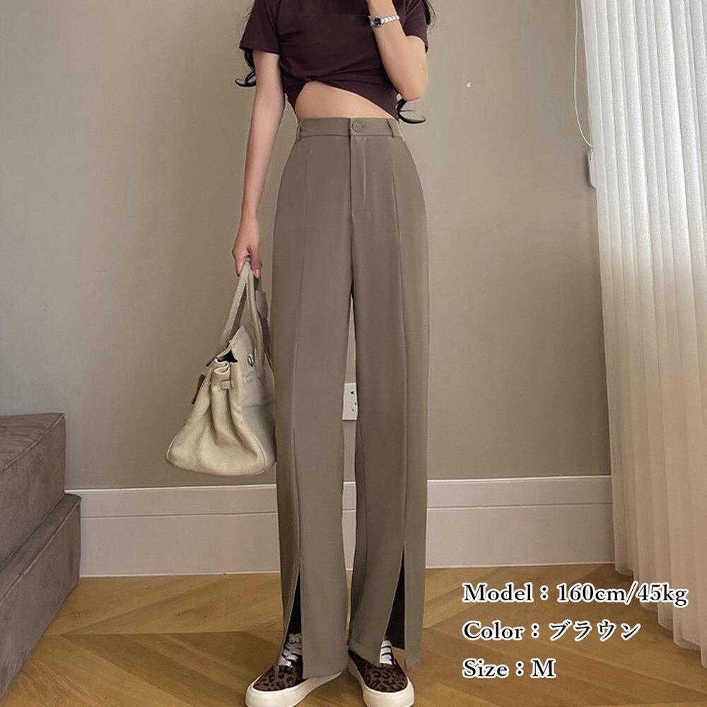 レディース おしゃれ センタースリット ストレートパンツ ハイウエスト ゆったり センタープレス セミワイドパンツ着やせ