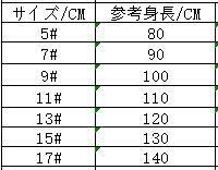 ◆サイズ:身長でご選択ください