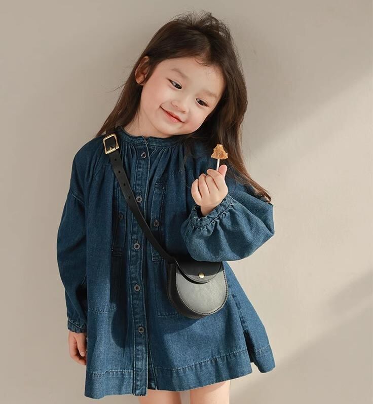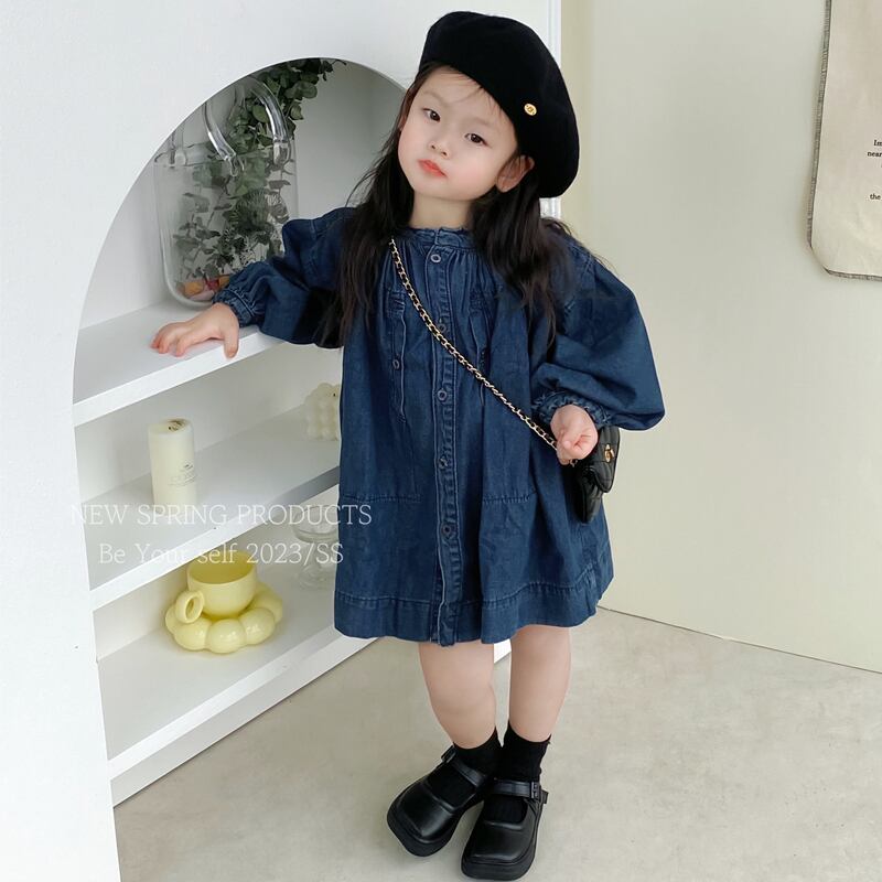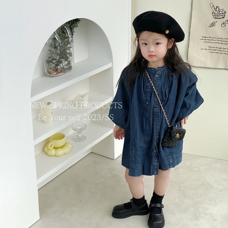 春新作 子供服 女の子 デニム シャツワンピース 長袖 可愛い おしゃれ Aライン ゆったり