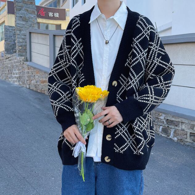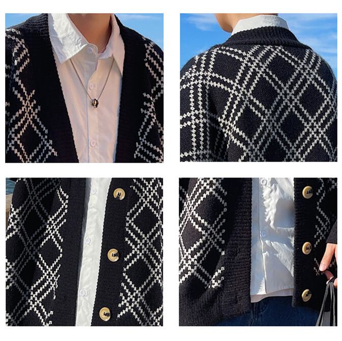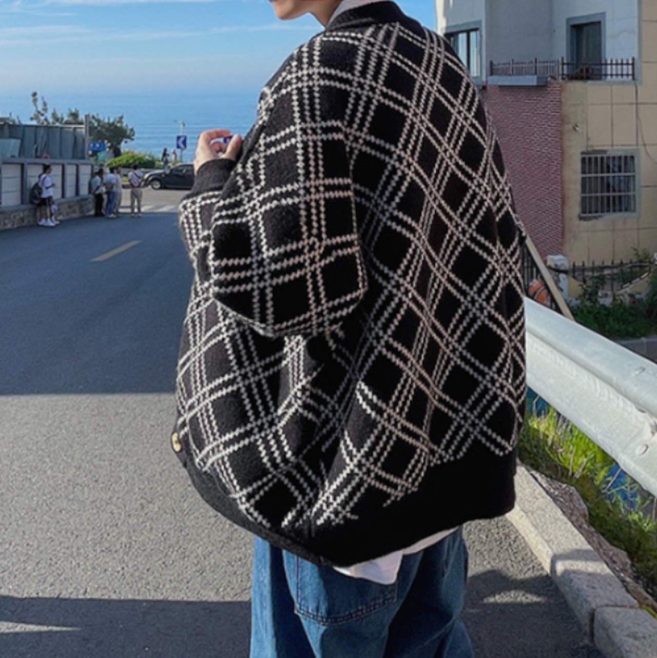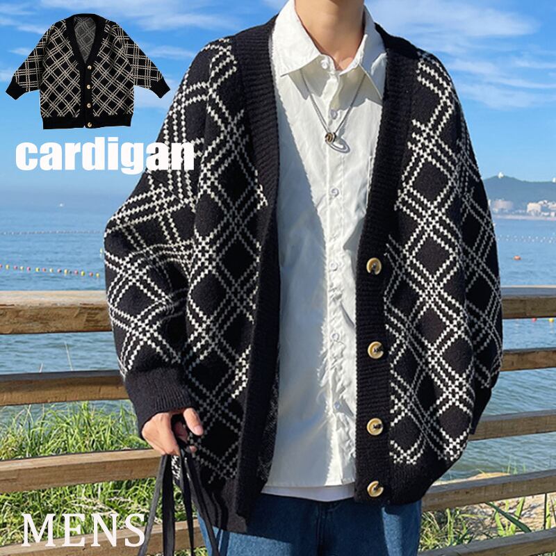 ・ゆったりシルエットのチェック柄メンズカーディガン。