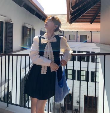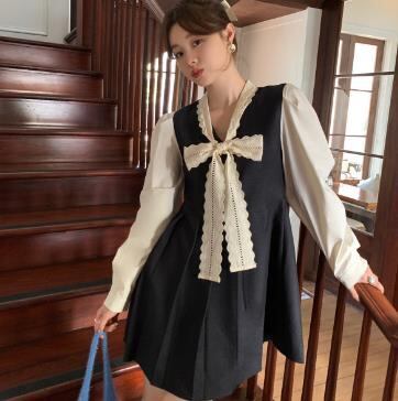 レディース ワンピース 春夏新作 チュニック 長袖 蝶結び