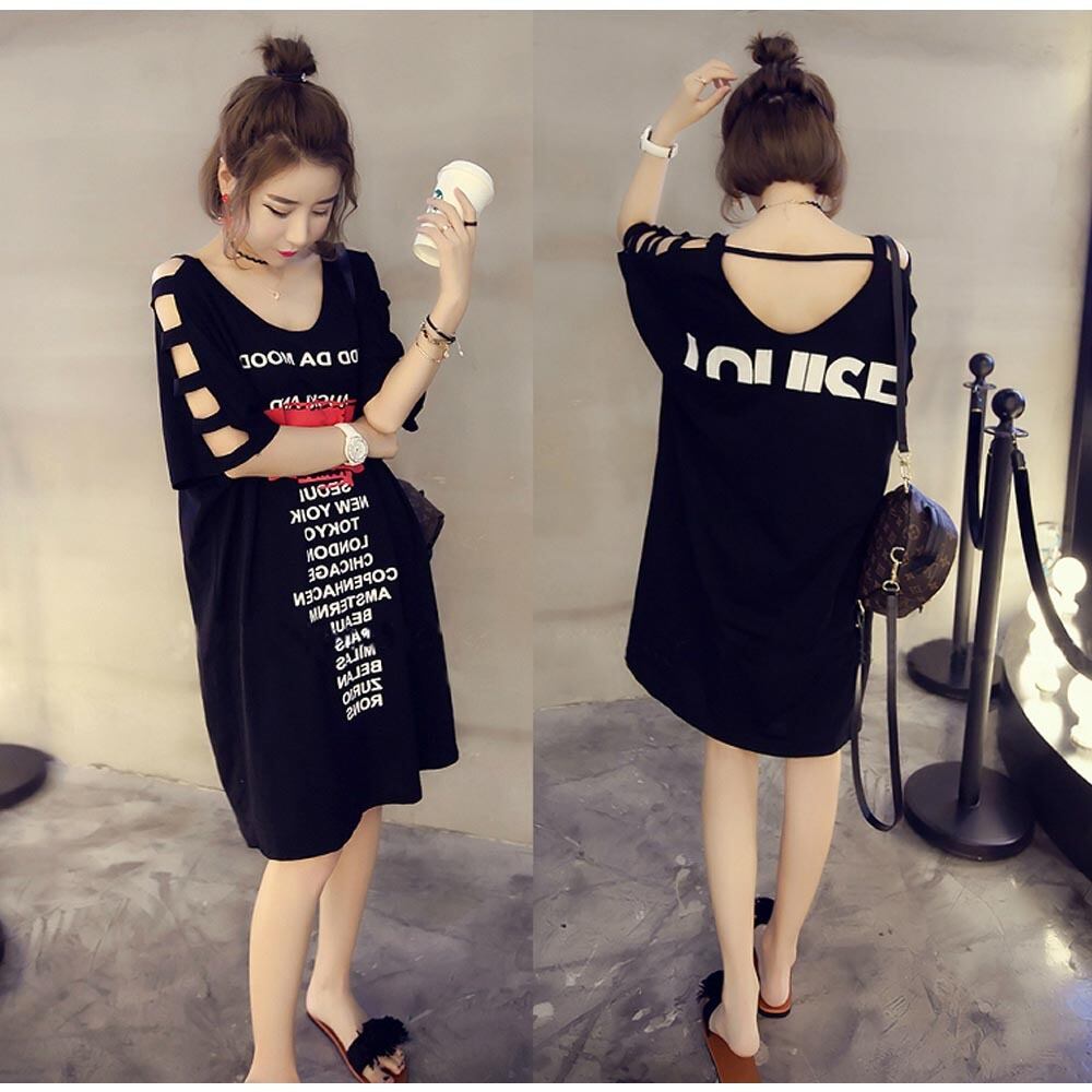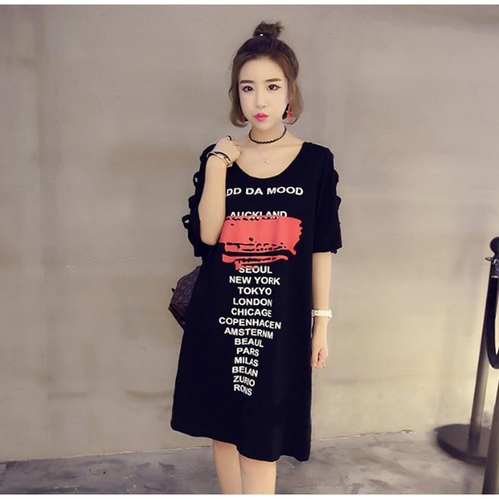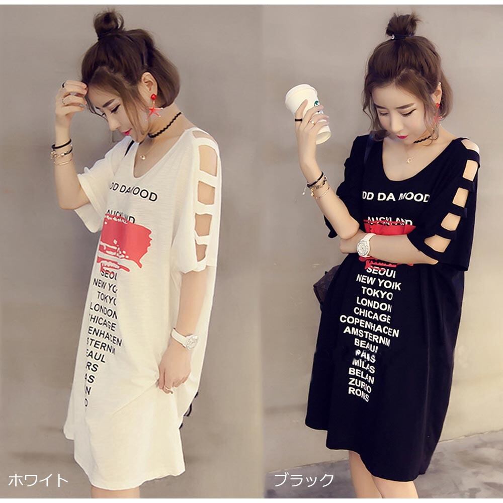 ロゴTシャツ レディース おしゃれ 5分袖 チュニック ミニワンピース