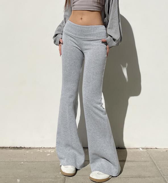 春秋新作 レディース ボトムス ハイウエスト 裏起毛 カジュアル パンツ スラックス ワイドパンツ 女