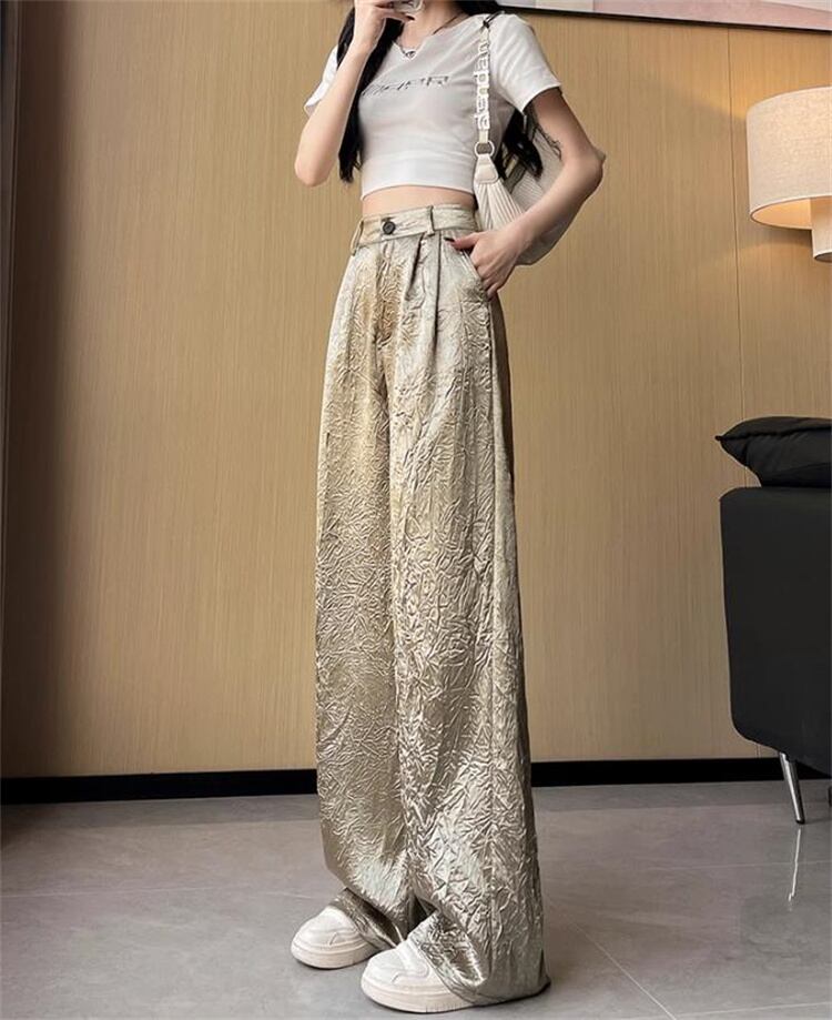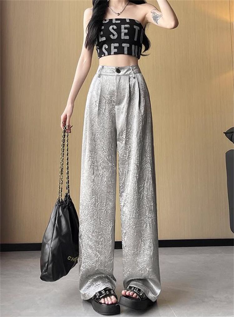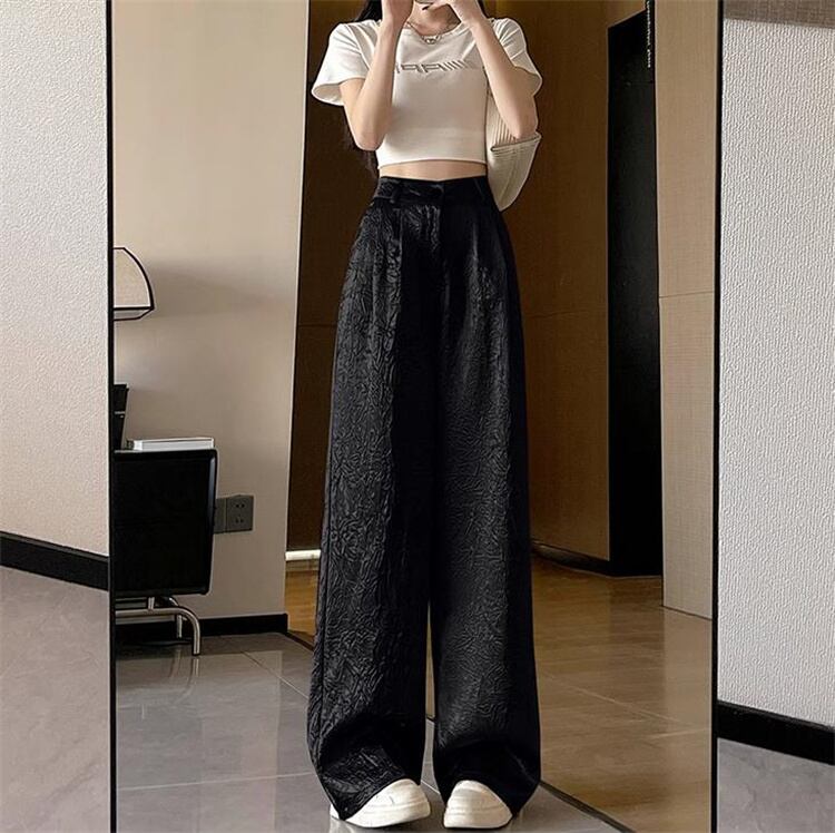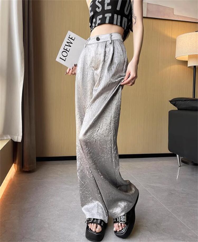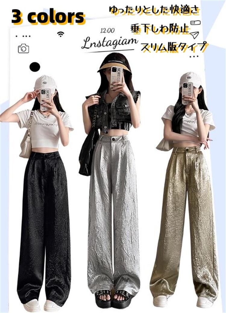 スーツパンツ ワイドパンツ ロングパンツ 夏2024 ハイウエスト スラックス 垂れ感 怠惰な風