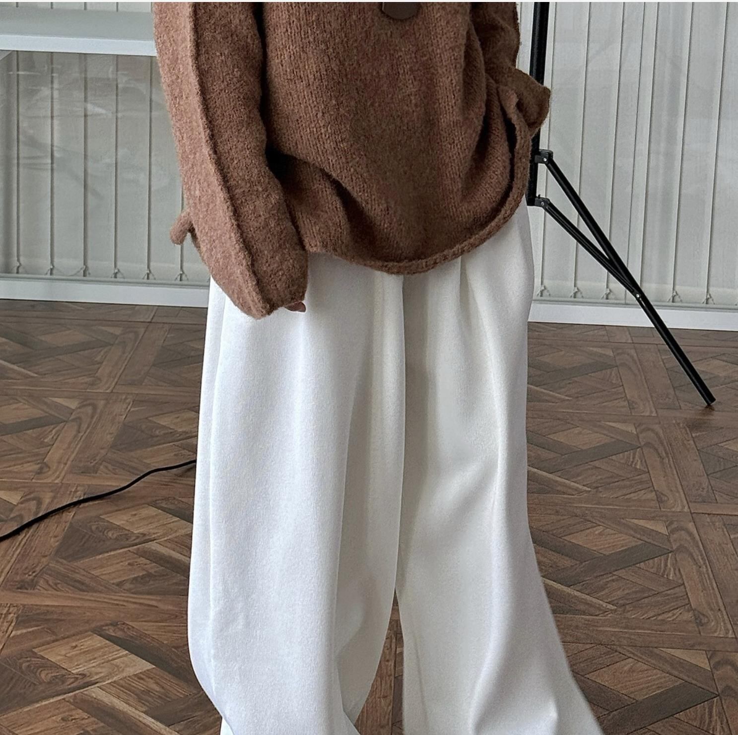 レディース ボトムス ワイドパンツ ハイウェスト 厚手 秋新作 スラックス