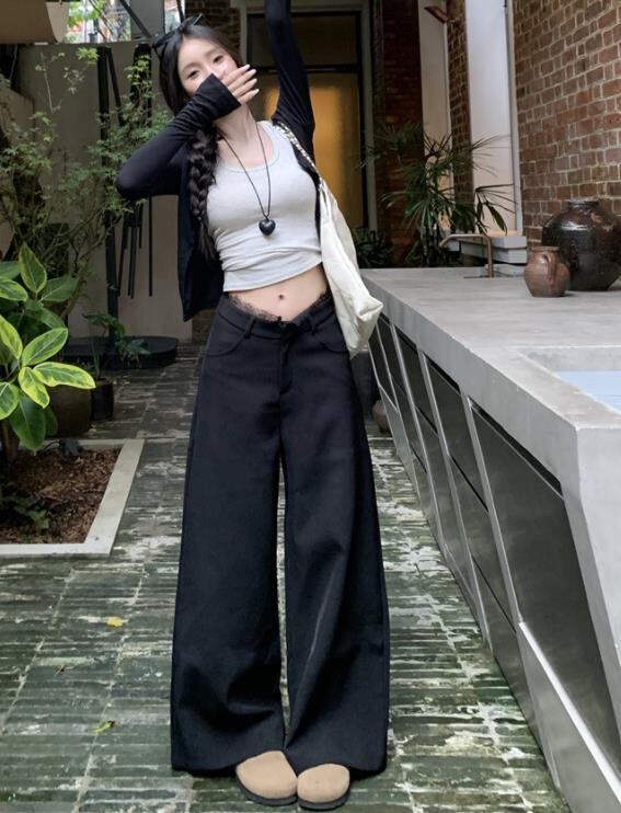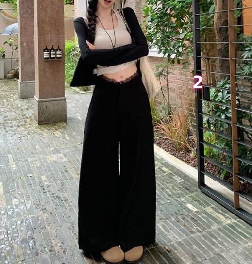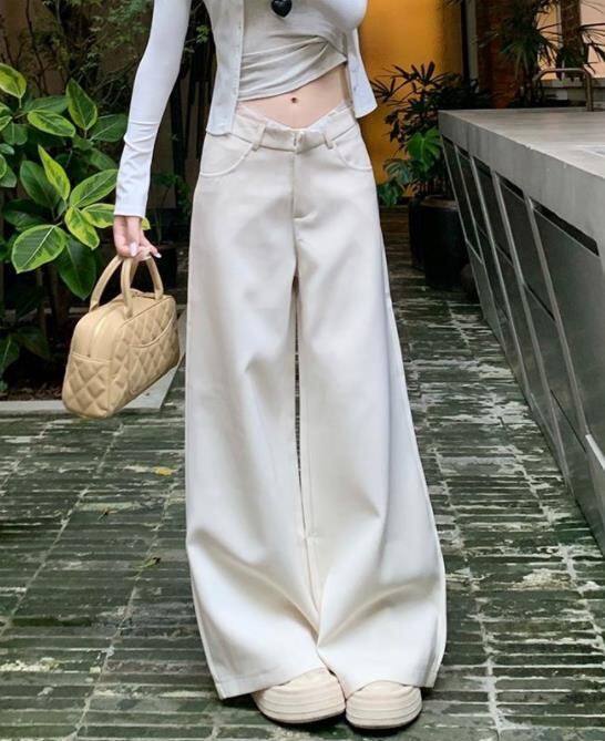 春秋新作 レディース ボトムス ハイウエスト カジュアル パンツ スラックス ワイドパンツ